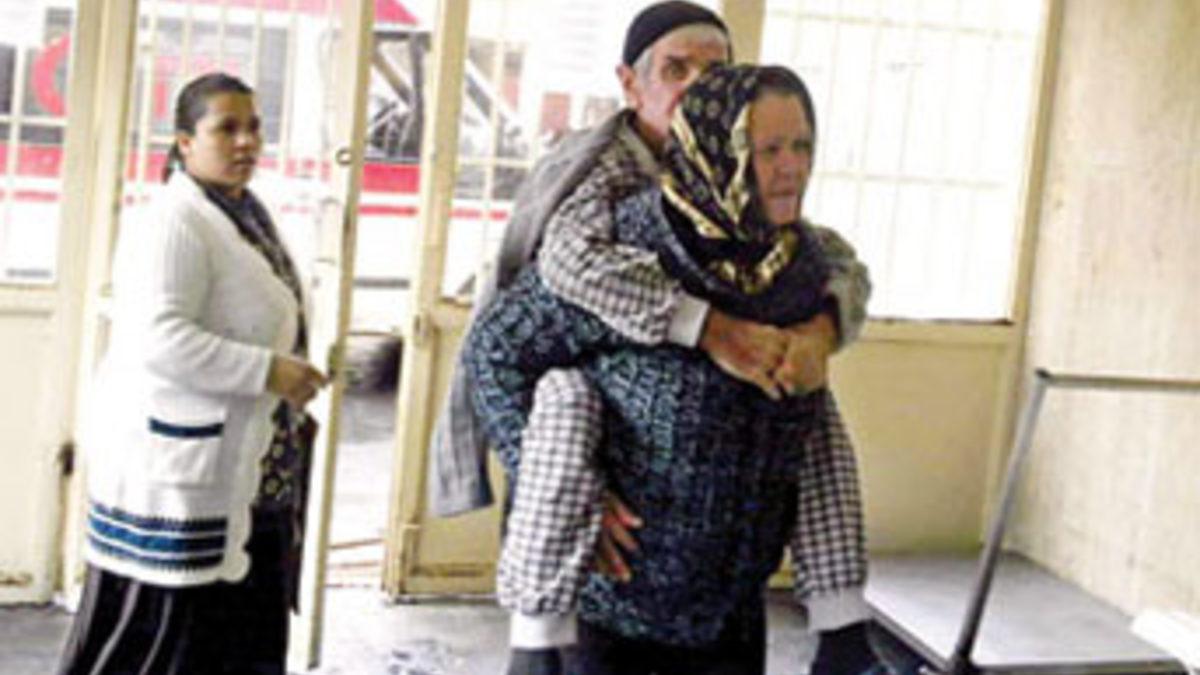 Fotoğraftaki inanılması güç görüntü doğudaki bir hastane değil Türkiye’nin en köklü kurumlarından İstanbul Üniversitesi Cerrahpaşa Tıp Fakültesi Radyasyon Onkolojisi Bölümü’nden. Her gün yüzlerce kanser hastasına hizmet veren hastanede, aylardır çalışan hiçbir asansör olmadığı için, hasta yakınlarından kimi babasını, kimi kızını sırtında katlar arasında bir aşağı bir yukarı taşıyor. En ağırından en hafifine seyreden her türlü kanser vakasına, radyasyon (ışın) tedavisinin uygulandığı beş katlı binada iki asansör bulunuyor. Ancak asansörlerden biri iki yıl önce bozulmuş olmasına rağmen bir türlü tamir edilemediği için kullanım dışı. Tüm yükü taşıyan diğer asansörün de bir buçuk ay önce bozulması, hem hastaların hem yakınlarının çektiği çileye çile ekledi. Hastalar bir yandan kanserle mücadele ediyor bir yandan da basamaklardan düşmemeye çalışıyor. Asansörlerden umut kesilmiş olacak ki hastane yönetimi, asansör kapılarının önüne bekleme koltukları koymuş. Bir de uyarı levhası var: “Asansör arızalıdır kullanmayınız.”