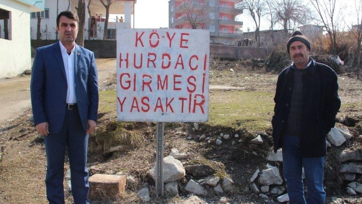 Batman’ın Kozluk ilçesine bağlı Samanyolu köyünde ikamet eden vatandaşlar, köyde yaşanan hırsızlık olaylarından hurdacıların sorumlu olduğunu savunarak, köyün iki girişine “Köye hurdacı girmesi yasaktır” tabelası astı.Kozluk ilçesine bağlı 110 haneli, 850 nüfuslu Samanyolu köyünde yaşanan hırsızlık olayları vatandaşları bezdirdi. Hırsızlık olaylarının yoğunlaşması nedeniyle araştırma yapan köylüler, köye gündüz hurdacı kılığında giren şahısların keşif yaptığını ve gece gelip hayvanlarını çaldığını belirledi. Bunun üzerine toplanan ileri gelenleri, köye hurdacıların girmesinin yasaklanması kararı alındı. Kararın alınmasının ardından köyün iki girişine, “Köye hurdacı girmesi yasaktır” tabelası asıldı.Köy muhtarı Cevdet Avcı, köylülerin çoğunun hayvancılıkla uğraştığını belirterek, “Köyde bir kaç defa hayvan hırsızlığı oldu ve bu olayı takip ettik. Köye girenler hurdacı adı altında geliyor ve köyün içini geziyor. Arabalarına 3-5 parça hurda atıyor ve hayvanların bulunduğu ahırları tespit ettikten sonra gece gelip hayvanları götürüyor. Gerçek manada hurda alımı yapanlar da, köyde lazım ve değerli olan eşyaları çocuklardan satın alıp götürüyor. O yüzden böyle bir levha asmayı uygun gördük. Köyün iki ana girişine bu tabeladan astık. Şimdi hurdacılar bizden habersiz köye giremiyor. Giriş yapmak isteyen hurdacı tanıdık olursa izin veriyoruz, tanınmıyorsa köye almıyoruz. Çoğu tabelayı gördükten sonra köyün girişinden dönüyor” dedi.Tabelayı hırsızlık olaylarını önlemek için astıklarını anlatan Ahmet Avcı adlı köylü ise, “Hurdacı adı altında köye girip keşif yapıyorlar, daha sonra gelip hayvanlarımızı çalıyorlar. Biz de bunun önüne geçmek için bu tabelaları astırdık. Tanımadığımız hurdacıları almıyoruz ama yine de bazıları bir yolunu bulup giriyorlar" diye konuştu.