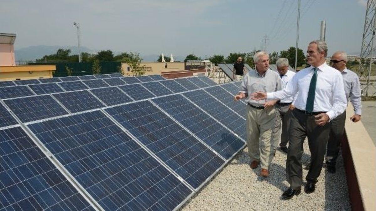 Bursa Büyükşehir Belediyesi hem kaynakların verimli kullanılması hem de enerji maliyetlerinin en aza indirilmesi için Şahin Başol Spor Kompleksi’nde güneş enerjisinden elektrik üretmeye başladı.Bursa’yı geleceğe taşıyacak projeleri bir bir hayata geçiren Büyükşehir Belediyesi, bir taraftan uyguladığı projelerde enerji verimliliğini de ön planla tutuyor. Bu açıdan Bursa’nın sahip olduğu tüm kaynakları verimli bir şekilde kullanan Büyükşehir Belediyesi, şimdi de güneş enerjisinden elektrik enerjisi elde etmeye başladı. İlk olarak BUSKİ’nin acemlerdeki atölyelerinde deneme amaçlı uygulaması yapılan güneşten elektrik enerjisi elde etme sistemi, Büyükşehir Belediyesi’nin hizmete açtığı en kapsamlı spor kompleksi olan Şahin Başol Tesisleri’ne de kuruldu. Bünyesinde standartlara uygun futbol sahası, 2 halı saha, spor salonu, yüzme havuzu, tenis kortu, fitness salonu ve açık hava spor alanlarının bulunduğu Şahin Başol Spor Kompleksi, aynı zamanda kendi enerjisini üretme özelliğiyle öne çıkmış oldu. Tesislerin kafeterya bölümünün çatısına konulan güneş kolektörleri ile saatte 10 kilovat elektrik enerjisi üretilmeye başladı. Tesisin kullanıldığı elektrik enerjisinin henüz 3’te birlik kısmı güneşten karşılanırken, güneş kolektörü sayısının artırılarak, daha fazla enerji elde edilmesi hedefleniyor.“ÖNEMLİ BİR ÇEVRE PROJESİ”Büyükşehir Belediye Başkanı Recep Altepe, Şahin Başol Spor Tesisleri’nde uygulamaya başlayan örnek çalışmayı yerinde inceledi. Beraberindeki BUSKİ Genel Müdürü İsmail Hakkı Çetinavcı ve Genel Müdür Yardımcısı Talat Özen’den sistemin çalışma şekli hakkında bilgiler alan Başkan Altepe, önemli bir çevre projesinin hayata geçirildiğini söyledi. Sadece bu dönem 100’ün üzerinde spor tesisini Bursa’ya kazandırdıklarını ve bu tesislerde ısıtma, soğutma, aydınlanma gibi enerji maliyetlerinin önem taşıdığını ifade eden Başkan Altepe, “Kente kazandırdığımız tesislerin sürdürülebilirliğini sağlamak için işletme maliyetlerinin mümkün olduğunca düşürmemiz gerekiyor. Özellikle enerji maliyetlerinin en aza indirilmesi için yenilenebilir enerji kaynaklarına yöneldik. Şahin Başol Spor Kompleksi’nde başlattığımız uygulama ile güneş enerjisinden elektrik üretmeye başladık. Burada üretilen elektrik, tesisin ihtiyaçlarının karşılanmasına kullanılıyor. Tüm tesislerimizde güneşten elektrik elde ederek, tesislerin sürdürülebilir olmasını hedefliyoruz” diye konuştu.