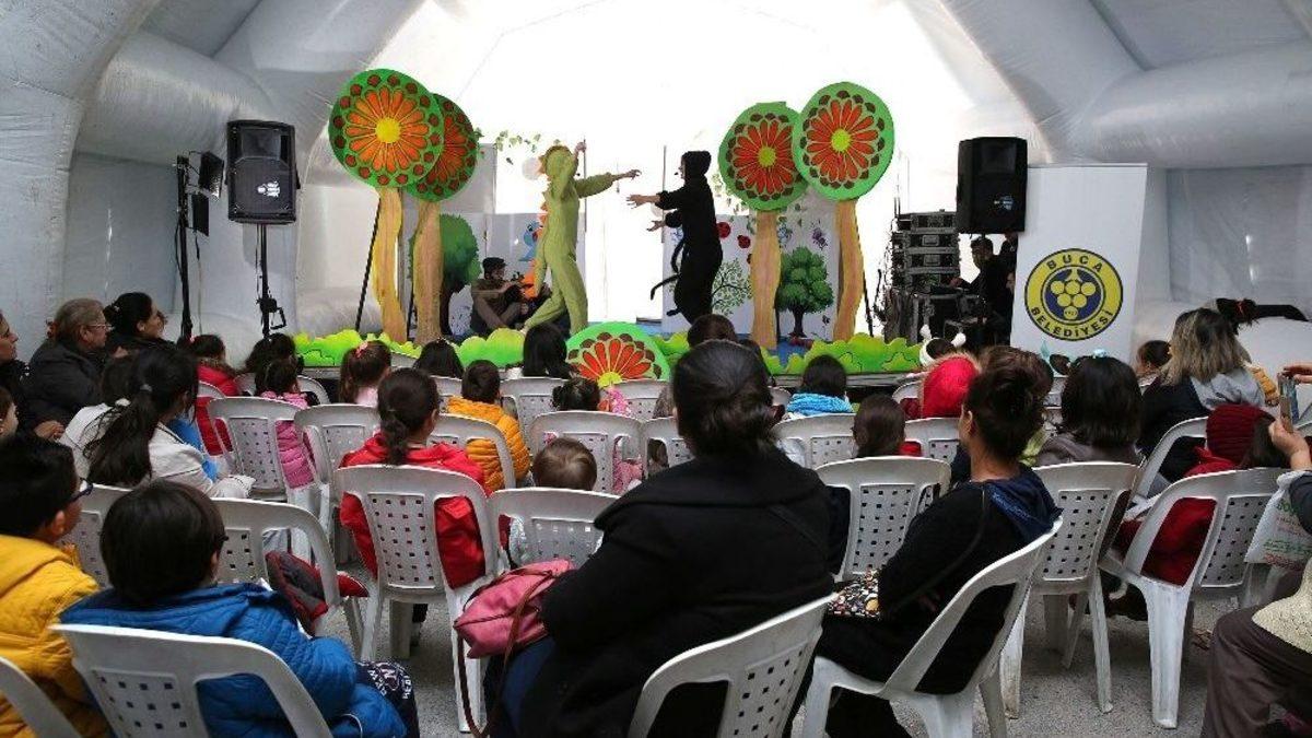 Buca Belediyesi’nin “Kültüre hayat, herkese sanat” sloganıyla sürdürdüğü çalışmalardan biri olan Çadır Tiyatrosu, bugüne kadar 23 bin 400 çocuğu tiyatro ile tanıştırıp, sanat aşkının ilk kıvılcımını yaktı.Buca Belediyesi’nin çocukları tiyatroyla buluşturmak için hayata geçirdiği Çadır Tiyatrosu Günleri coşkuyla devam ediyor. Belediye, “Kültüre hayat, herkese sanat” sloganıyla sürdürdüğü kültürel etkinliklerden biri olan çalışma ile tiyatroyu Bucalı çocukların ayağına götürüyor. Özel donanımlı şişme çadır olarak her hafta farklı bir mahallede kurulan Çadır Tiyatrosu, çocuklara sanat dolu hafta sonları sunuyor. Her ay hafta sonları 4 ayrı mahallede kurulan ve birbirinden eğlenceli oyunları çocuklarla buluşturan Çadır Tiyatrosu bugüne kadar 47 mahallede yaptığı 156 gösteride 23 bin 400 çocuğu tiyatro sanatıyla tanıştırdı.Birbirinden eğlenceli ve eğitici oyunlarla her yaştan çocuğa hitap eden tiyatro, geleceğin sanatçılarına da ilham kaynağı oluyor.