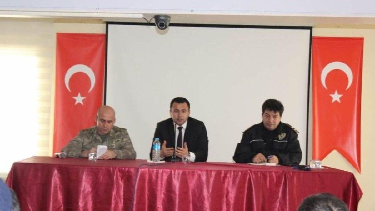 MUŞ (İHA) – Muş’un Bulanık İlçe Jandarma Komutanı Yüzbaşı Ömer Altaş, terörle mücadelede öğretmen ve din görevlerine büyük görevler düştüğünü belirterek, "Teröristin cenaze namazını kılmak, taziye evleri ve camilerin kullanılması yasak” dedi.Muş’un Bulanık Kaymakamlığı Ocak Ayı Güvenlik Toplantısı düzenlendi. Toplantıda imamlara yönelik bir sunum yapan Emniyet Müdürü Uğur İhsan Azap, terör konusuna değindi. Etnik kökencilik, sosyal ve kültürel faaliyetler, eziklik ve ezilmişlik, devlete karşı propagandalar, arkadaş ilişkileri, sosyal ve psikolojik yöntemler, terör saldırılarının hedefleri, eylem tarzları gibi konu başlıkları üzerinde duran Azap, bunun yanı sıra uyuşturucu, hırsızlık, gasp olaylarıyla ilgili de bir sunum yaptı.İlçe Jandarma Komutanı Yüzbaşı Ömer Altaş ise terörle mücadelede öğretmen ve din görevlerine büyük görevler düştüğünü söyledi. Terörist cenazelerine de değinen Altaş, "Terörün cenaze namazını kılmak, taziye evlerini kullanması, ibadet alanlarının yani camilerin kullanılması yasak. Bu gibi durumlarda Alo 140 ve Alo 155 ihbar hattına bilgi verilmelidir" diye konuştu.Bulanık Kaymakamı ve Belediye Başkan Vekili Hacı Arslan Uzan da, teröristle değil terörizmle mücadele edildiğine dikkat çekti. Terörün önlenmesi için özellikle dini değerlerin en iyi şekilde vatandaşlara aktarılması gerektiğine vurgu yapan Hacı Arslan Uzan, vatandaşların bilinçlendirilmesinin önemli olduğunu belirtti. İmamların toplumda saygın bir kimlikleri olduğunu vurgulayan Uzan, "Toplumu yönlendirmek, doğruyu göstermek Allah rızası için yapılmalıdır. Din bir nasihattir, aksi takdirde amacına ulaşamaz. Toplumumuzun rehbere ihtiyacı vardır. Bizim temel sıkıntımız dini iyi anlatamamaktan kaynaklanıyor. Sizler anlatamazsanız terör örgütleri bu durumlardan faydalanır. Kısacası ülke üzerinde oynanan oyunları görmek, bilinçli olmak gerekir" ifadelerini kullandı.Erken yaşta evlilik ve kadına şiddet konularına da değinen Kaymakam Uzan, kadına yönelik şiddetin de üzerinde durularak, mücadele edilmesi gerektiğine dikkat çekti. Kız çocuklarının okutulmayarak erken yaşta evlendirilmeleri konusunda da imamlara uyarılarda bulunan Uzan, "Çocuklarını küçük yaşta evlendiren aileler, resmi nikah kıyamadıkları için dini nikah kıyıyorlar. Bu tür durumlara din görevlilerimiz müsaade etmemeli ve yaşı reşit olmayan çocuklarımıza nikah kıymasınlar. Bu konuda alacağımız duyumlarda kesinlikle tavizkar olmayacağım ve erken yaşta evliliğe göz yumanlar hakkında işlem yaptıracağım" diye konuştu.Belediyenin konferans salonunda düzenlenen toplantıya İlçe Kaymakamı ve Belediye Başkan Vekili Hacı Arslan Uzan, Emniyet Müdürü Uğur İhsan Azap, Jandarma Komutanı Yüzbaşı Ömer Altaş ve İlçe Müftü Vekili Bünyamin Gölcü ile köy ve ilçe merkezinde görev yapan imamlar katıldı.