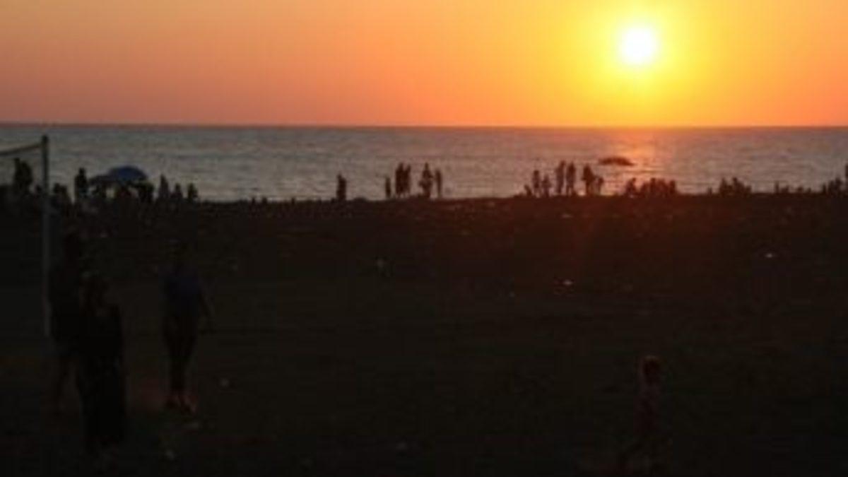 Hafta sonunda sahillere akın Zonguldaklılar, denize girmenin ve gün batımının keyfini sürdü.