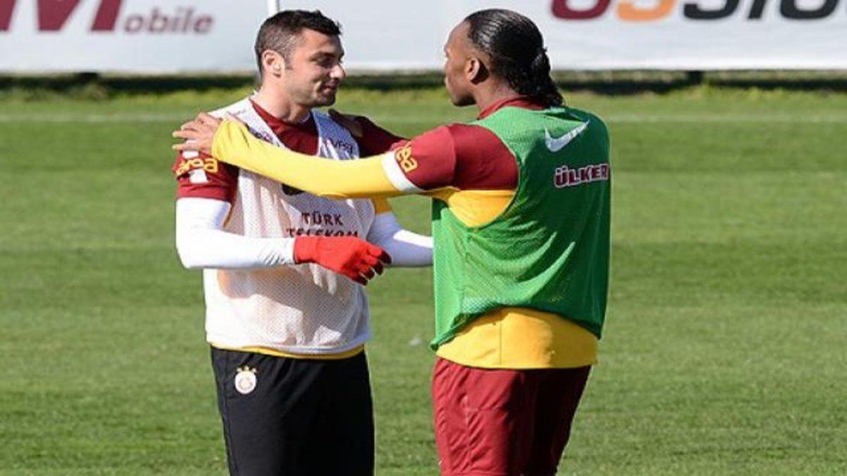 Galatasaray'ın antrenmanında, golcü futbolcu Burak Yılmaz ile yeni transfer Didier Drogba arasındaki samimi görüntüler dikkati çekti.
