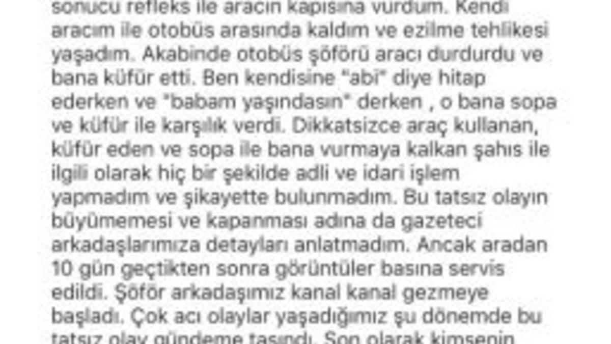 Milli futbolcu Burak Yılmaz, otobüs şoförü ile tartışmasına ilişkin sosyal medya hesabından açıklamada bulundu. Burak Yılmaz, "Gündemi böyle bir konu ile meşgul ettiğim için özür diliyorum" dedi.Burak Yılmaz geçtiğimiz günlerde bir halk otobüsü şoförü ile tartışma yaşamış, tartışmanın güvenlik kameralarını İhlas Haber Ajansı ortaya çıkarmıştı. O tartışmayla ilgili Burak Yılmaz sosyal medya hesabından açıklamalarda bulundu. Burak Yılmaz yaptığı açıklamada, "Bir halk otobüsü personeliyle aramda geçen tatsız münakaşaya ilişkin olarak bu açıklamayı yapmaya gerek duydum. Öncelikle belirtmek isterim ki linç kültürünün güzel ülkemde her alana hakim olması beni çok üzmektedir. Olayın aslına gelirsek, aracımı görevli vale arkadaşımıza teslim ederek yolun karşısına geçmekteyken otobüsün aynasının kafamı teğet geçmesi sonucu refleks ile aracın kapısına vurdum. Kendi aracım ile otobüs arasında kaldım ve ezilme tehlikesi yaşadım. Akabinde otobüs şoförü aracı durdurdu ve bana küfür etti. Ben kendisine ’abi’ diye hitap ederken ve ’babam yaşındasın’ derken, o bana sopa ve küfür ile karşılık verdi. Dikkatsizce araç kullanan, küfür eden ve sopa ile bana vurmaya kalkan şahıs ile ilgili olarak hiç bir şekilde adli ve idari işlem yapmadım ve şikayette bulunmadım. Bu tatsız olayın büyümemesi ve kapanması adına da gazeteci arkadaşlarımıza detayları anlatmadım. Ancak aradan 10 gün geçtikten sonra görüntüler basına servis edildi. Şoför arkadaşımız kanal kanal gezmeye başladı. Çok acı olaylar yaşadığımız şu dönemde bu tatsız olay gündeme taşındı. Son olarak kimsenin ekmeği ile oynamam mümkün değildir ve öğrendiğim kadarı ile de İETT, şoför beyin iş akdini feshetmemiştir. İETT kendi bünyesinde konuya ilişkin tahkikat başlattığını kamuoyuna duyurmuştur. Ülkemizin birlik ve beraberliğe, dayanışmaya en çok ihtiyacı olduğu bu günlerde, kendi adıma üzerime düşeni yaptığımı düşünüyorum. Yine de gündemi böyle bir konu ile meşgul ettiğim için canım ülkemden özür diliyorum" dedi.