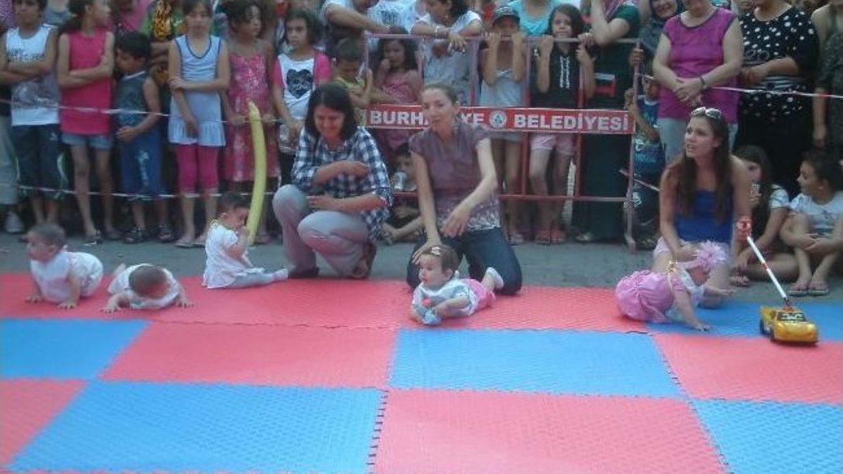 Balıkesir’in Burhaniye ilçesinde, 24. Burhaniye-Ören Turizm, Kültür ve Sanat Festivali kapsamında düzenlenen bebek emekleme yarışmasında büyük heyecan yaşandı.