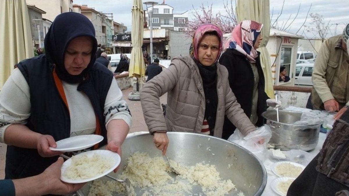 Balıkesir’in Burhaniye ilçesinde, şehitler için Kur’an ve mevlit okunurken, cami önünde de yüzlerce vatandaşa pilav ayran ikramı yapıldı.Koca Camii’nde Müftü Hacı Öz’ün öncülüğün de bir araya gelen din görevlileri, Kur’an-ı kerim ve mevlit okurken, şehitler için dua etti. Cami önünde de belediye tarafından pilav ayran ikramı yapıldı.Burhaniye’de, Şehitler için okunan mevlit ve düzenlenen pilav hayrına ilgi büyük oldu. Hayıra katılanlar, şehitlere dua ederken, emeği geçenlere de teşekkür etti.Din görevlisi Ramazan Aşık,” İlçemizde seçkin hocalarımız, müftü ve vaizimizle beraber gelmiş geçmiş şehitlerimiz ve Afrin şehitleri için dua ederek mevlit okuduk. Ruhları şad olsun. Gazilerimize acil şifalar eylesin Allah’ım. Şehitlerimizi ölünceye kadar anacağız” dedi.Hayıra katılanHalim Yanık isimli vatandaş, "Afrin Şehitlerimizi andık yad ettik. Çanakkale şehitlerimizi andık yad ettik. Allah, hayır sahiplerinden razı olsun. Bu vatan ve milleti seven, bütün hayırseverlerden Allah razı olsun” dedi. Abdullah Karataş ve Buğra Baykuş isimli vatandaşlar ise,”Allah, şehitlerimize rahmet eylesin. Hayır sahiplerinden de Allah razı olsun”diye konuştu.