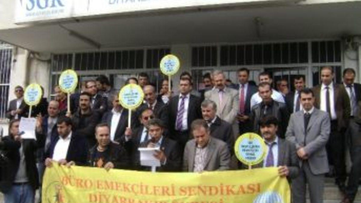 Büro Emekçileri Sendikası (BES) Diyarbakır Şubesi üyeleri, Sosyal Güvenlik Kurumu (SGK) Başkanlığı'nı mahkeme kararlarını uygulamaya davet etti.SGK Diyarbakır İl Müdürlüğü binası önünde bir araya gelen BES Diyarbakır Şubesi üyeleri, Anayasa Mahkemesi'nin kararlarının uygulanmasına yönelik basın açıklaması yaptı. BES üyeleri adına açıklama yapan Mehmet Ay, Anayasa Mahkemesi'nin, fazla mesai, ikramiye ve vekalet ücreti gibi ödemelerin kaldırılmasını getiren kararname hükümlerini iptal ettiğini belirterek, SGK Başkanlığı'nın, kararı uygulamadığını öne sürdü. Ay, "666 sayılı KHK ile Sosyal Güvenlik Kurumu Başkanlığı başta olmak üzere işkolumuzdaki birçok kurumda çalışan büro emekçilerinin 2013 yılı içerisinde fazla mesai, ek ödeme, ikramiye, vekalet ücreti gibi kalemlerde ödemelerin kaldırılması sonucunda 5 bin ile 10 bin lira arasında ücret kayıplarının yaşanmasına neden olunmuştur. Kararnamenin bazı maddelerine ve kamu emekçilerinin mali haklarını düzenleyen kısımlarına Anayasa'ya aykırılık gerekçesiyle ana muhalefet partisi tarafından iptal davası açılmış, Anayasa Mahkemesi'nin 10 Ekim 2013 tarihinde yayınlanan gerekçeli kararıyla, kurumların teşkilat kanunlarında belirlenen döner sermaye payı, ikramiye, ek ödeme, vekalet ücreti gibi ödemelerin kaldırılmasını getiren kararname hükümlerini iptal etmiştir. Anayasa Mahkemesi’nin yayınlanan gerekçeli kararına göre SGK emekçilerinin ikramiyelerinin ödenmesi önünde hiçbir engel kalmamıştır. Ayrıca, ikramiyelerin ödenmesi talebiyle çalışanlarca birçok ilde davalar açılmış ve bu davalar lehte sonuçlanmaya başlanmıştır. Sosyal Güvenlik Kurum Başkanlığı yerel mahkemelerin verdiği bu kararları dahi uygulamayarak suç işlemeye devam etmektedir" dedi.Kamu çalışanlarının çalışma koşullarının da iyileştirilmesinin gerektiğini belirten Ay, mahkeme kararlarına uyulmadığı takdirde, sendika olarak mücadelelerinin devam edeceğini belirtti.Grup, yapılan basın açıklamasının ardından sessizce dağıldı.