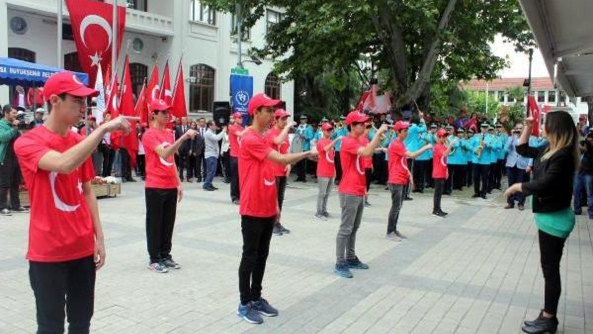 Halil ÖZÇOBAN- Faruk KAHRAMAN/ BURSA (DHA)- BURSA'da 19 Mayıs Atatürk'ü Anma, Gençlik ve Spor Bayramı törenlerinde, işitme ve konuşma engelli gençler, bando eşliğinde işaret diliyle İstiklal Marşı'nı söyledi.