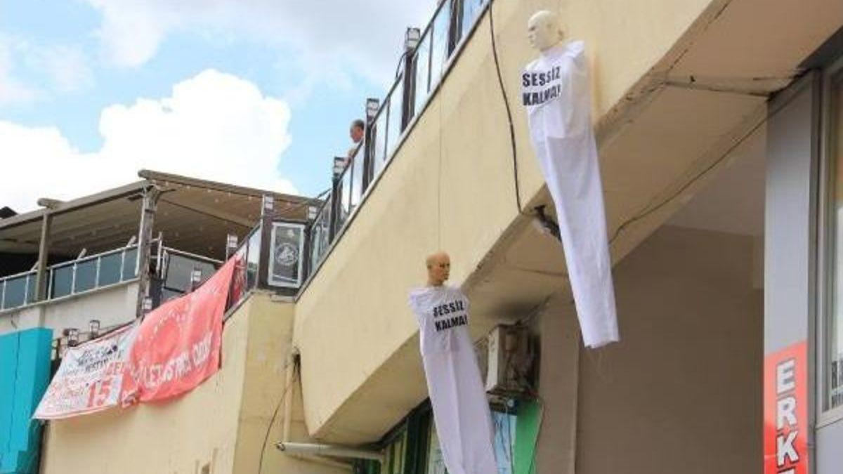 BOLU, Belediye Meydanı'nda toplanan grup, Muhammet Mursi için verilen idam cezasını protesto etti. Basın açıklaması sırasında Belediye Meydanı'ndaki işyerlerinin üstünden kefen giydirilen en ve üzerinde 'Sessiz kalma' yazan iki cansız manken boyunlarına geçirilen iple sallandırıldı. İple sallandırılan cansız mankenlerin yanında Ak Parti Gençlik Kolları İl Başkanı Taha Furkan Sönmezel 'Rabia' işareti yaparak basın açıklamasını okudu.