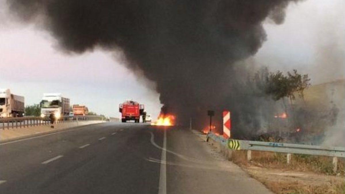 Kaza, bu sabah Bursa-İzmir karayolundaki Karacabey İlçesi yakınlarında bulunan Çingençeşme Mevkii'nde meydana geldi. Balıkesir'den Bursa'ya giden S.M. bilinmeyen nedenle yönetimindeki 34 BFK 23 plakalı boya yüklü kamyonun direksiyon kontrolünü yitirince araç karşı şeride geçip, Karacabey yönüne giden iki otomobilin üstüne devrildi. Kazada, alev alan boyaların yanmaya başladığı kamyonun altında kalan 16 R 1772 plakalı otomobilde bulunan Orhan Tilki ile Tuncay Karaduman yanarak öldü. Kamyon sürücüsünün de yaralandığı kaza ardından alev alan kamyon ve otomobiller itfaiye ekipleri tarafından güçlükle söndürüldü. Plakası alınamayan diğer otomobilde kimsenin yaralanmadığı ifade edildi.