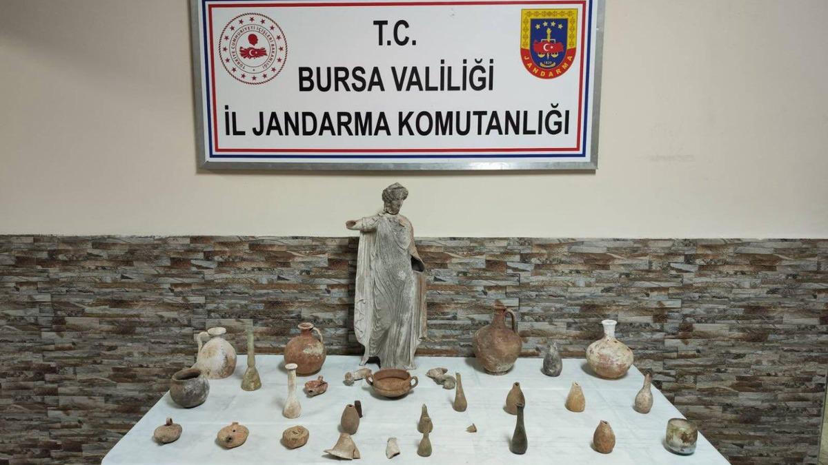 Bursa'da tarihi eser operasyonunda 29 obje ve heykel ele geçirildi