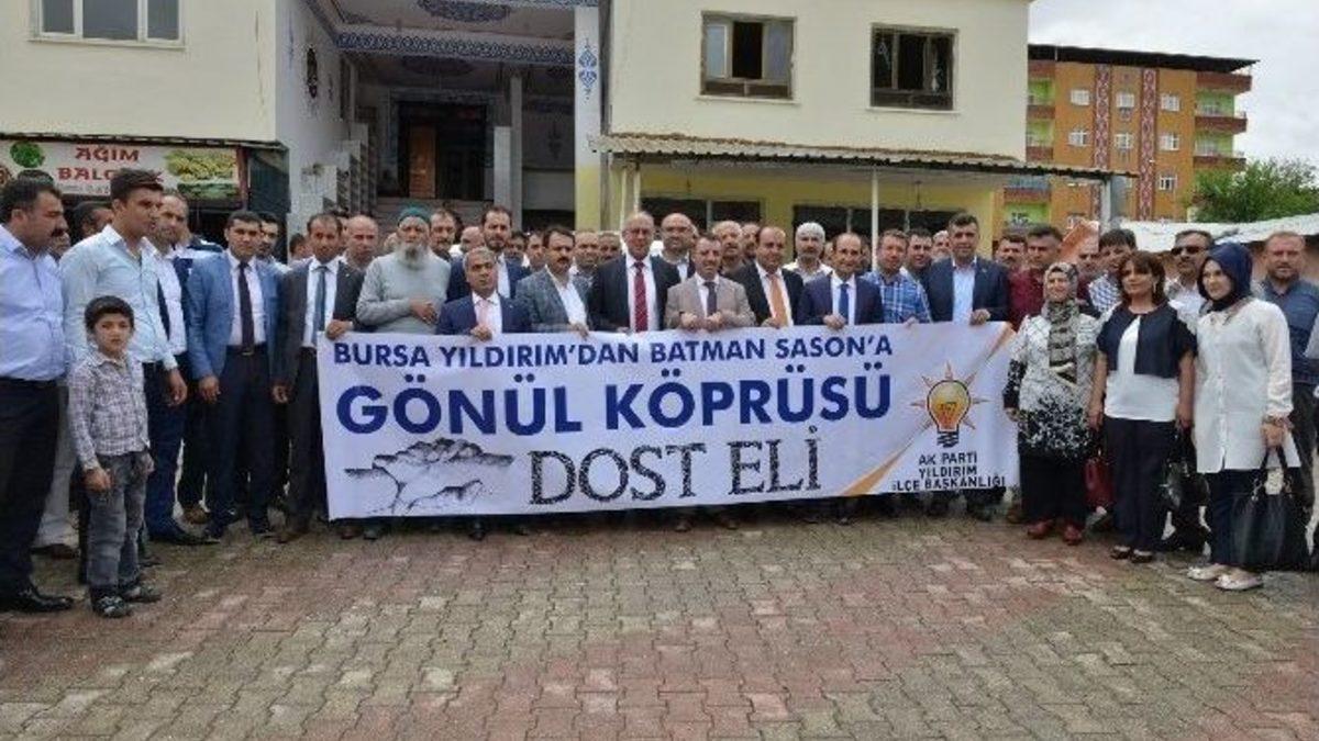 AK Parti Bursa İl Başkanlığı, dostlukların güçlenmesi adına Batman’ın Sason ve Kozlu ilçe teşkilatlarını ziyaret etti.AK Parti Bursa il Başkanlığı, Genel Merkez Halkla İlişkiler Başkanlığı’nın projesiyle anlamlı bir ziyarete imza attı. Bu kapsamda AK Parti İl Halkla İlişkiler Başkanı Hasan Kılıç, beraberinde Osmangazi İlçe Başkanı Ali Yılmaz, ilçe teşkilat üyeleri ve Osmangazi Belediye Başkanı Mustafa Dündar’la birlikte Batman’ın Kozluk, Yıldırım İlçe Başkanı Hüdayi Yazıcı ise beraberinde ilçe teşkilat mensupları ve Yıldırım Belediye başkanı İsmail Hakkı Edebali ile birlikte Sason İlçesi’ne ziyarette bulundu. Çeşitli programlarla AK Parti teşkilatları, yerel yöneticiler, STK’lar ve halkın ziyaret edildiği programlarda Bursalı AK Teşkilatlar Kozlu ve Sason’da adeta sevgi seli ile karşılandı.ikinci Batman ziyareti ise 26 Haziran Pazar Günü gerçekleştirilecek. Ziyarete AK Parti Genel Başkan Yardımcısı Mehmet Müezzinoğlu, Bursa Büyükşehir Belediye Başkanı Recep Altepe ve AK Parti Bursa İl Başkanı Cemalettin Torun’da ziyaret gerçekleştirecek.