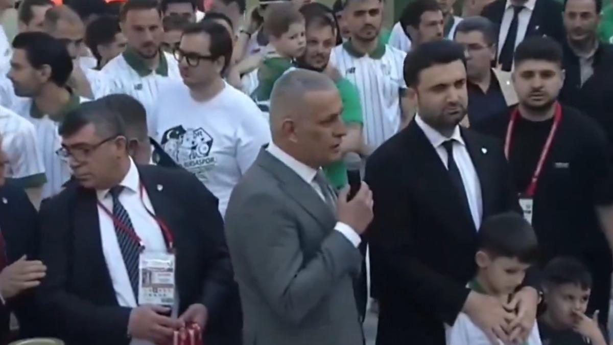 Bursaspor taraftarları, Hacıosmanoğlu’nun konuşması sırasında uzun süre ıslık ve yuhalamalarla tepkilerini dile getirdi. Yoğun protestoya rağmen konuşmasına devam eden Hacıosmanoğlu’nun sözleri, tribünlerden gelen sesler nedeniyle zaman zaman duyulmakta zorlandı.