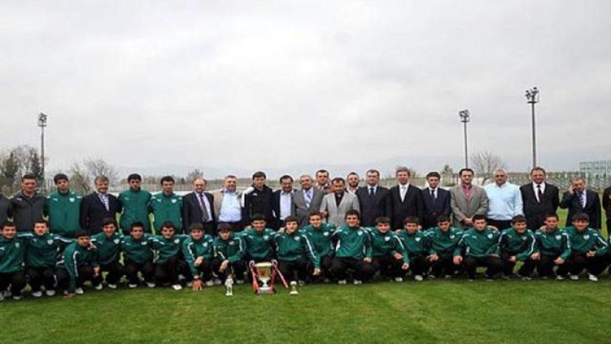 Vakıfköy Orhan Özselek Altyapı Tesisleri'nde düzenlenen ödül töreninde Bursasporlu yöneticiler Necmettin Kocaman, Şentürk Turan, teknik direktör Ertuğrul Sağlam ile altyapı antrenörleri hazır bulundu.