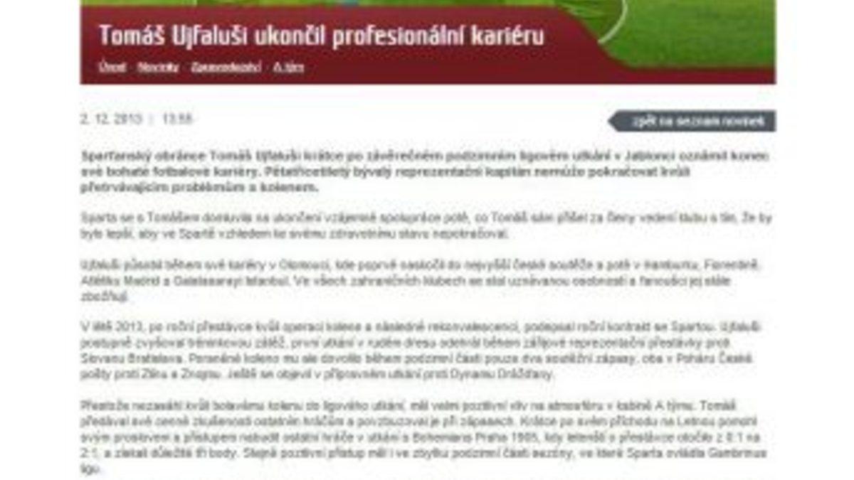 Bir dönem Galatasaray forması da giyen Çek futbolcu Tomas Ujfalusi, profesyonel futbolculuk kariyerini sonlandırdığını açıkladı.Galatasaray'dan sonra Sparta Prag takımına transfer olan 35 yaşındaki Ujfalusi, geçen sezon antrenman sırasında diz çapraz bağının kopması ve uzun süren tedavinin ardından futbolu bıraktığını açıkladı. Kariyerine 1996 yılında Sigma Olomouc takımında başlayan "Big Chief" lakaplı tecrübeli futbolcu, daha sonra Hamburg, Fiorentina, Atletico Madrid, Galatasaray ve Sparta Prag takımlarında forma giydi.Ujfalusi, Çek Milli Takım formasını da 78 kez giyerken, Atletico Madrid ile ise birer kez Avrupa Ligi ve Avrupa Süper Kupa şampiyonluğu yaşamıştı.