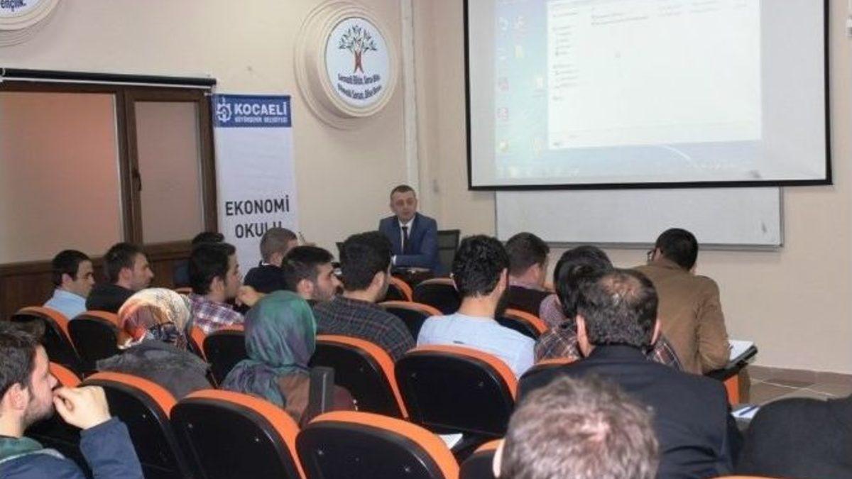 Kocaeli Büyükşehir Belediyesi Gençlik Hizmetleri Şube Müdürlüğü tarafından düzenlenen Ekonomi Okulu, Kocaeli Büyükşehir Belediyesi Genel Sekreteri Doç. Dr. Tahir Büyükakın’ı ağırladı.Kocaeli Büyükşehir Belediyesi Kültür ve Sosyal İşler Dairesi Başkanlığı Gençlik Hizmetleri Şube Müdürlüğü tarafından organize edilen, öğrencilerin büyük ilgisiyle karşılanan Ekonomi Okulu’nun bu haftaki konuğu Kocaeli Büyükşehir Belediyesi Genel Sekreteri Doç. Dr. Tahir Büyükakın oldu. Üniversite gençliğinin akademik kariyerine destek amacıyla faaliyete geçirilen Siyaset, Klasik Düşünce, Ekonomi, Yabancı Diller ve Hukuk Okulları gibi eğitimler, Gençlik Hizmetleri Şube Müdürlüğü çatısı altında verilmeye devam ediyor.Farklı uygulamalarla gençlerin önünü açan, eğitim ve iş hayatına yönelik uygulamalar yapan Gençlik Hizmetleri Şube Müdürlüğü’nün akademik seviyedeki eğitimlerinden biri de Ekonomi Okulu. Öğrencilerin büyük ilgisiyle karşılanan Ekonomi Okulu’nda gençler; Mikro ve Makro İktisadi Mantık, Ekonominin Ölçülmesi, İstihdam, İşsizlik ve İktisadi Politikanın İşleyişi, Medyada Ekonomi Okuması ve Türkiye Ekonomisinin Görünümü konularında eğitim alıyor.Her hafta konusunda uzman, farklı bir akademisyenin eğitim verdiği Ekonomi Okulu’nda bu hafta Kocaeli Büyükşehir Belediyesi Genel Sekreteri Doç. Dr. Tahir Büyükakın, “Kriz pratiği üzerinden Türkiye ve dünya ekonomisine bakış” konusunu işledi. Ülkemizde ve dünyada yaratılan krizlerin, ülke ekonomisini nasıl etkilediğine değinen Büyükakın, ekonomik krizlere neden olan faktörlerin önde gelenleri arasında politik sebeplerin olduğuna dikkat çekti.Ayrıca bir ülkenin ekonomik krize girmesi için tek bir faktörün yeterli olmayacağını, krizin tam olarak gerçekleşmesi için ekonomik büyüme oranlarının düşmesi, işsizliğin artıp istihdamın düşmesi, iç ve dış politika gibi birçok etkenin bir arada olması gerektiği bilgilerini gençlere aktardı. Gençlerle soru-cevap şeklinde ilerleyen derste; krizleri sektörel, ülke çapında ve dünya genelindeki krizler olarak ayırabileceğini anlatan Büyükakın, böyle durumlarda alınması gereken tedbirlerden bahsetti.Ekonomi Okulu öğrencileri kendilerine sağlanan imkandan çok memnun olduklarını ifade ederek, başta Kocaeli Büyükşehir Belediye Başkanı İbrahim Karaosmanoğlu olmak üzere Akademi Üniversite projesinde emeği geçen herkese teşekkür ettiklerini dile getirdiler.