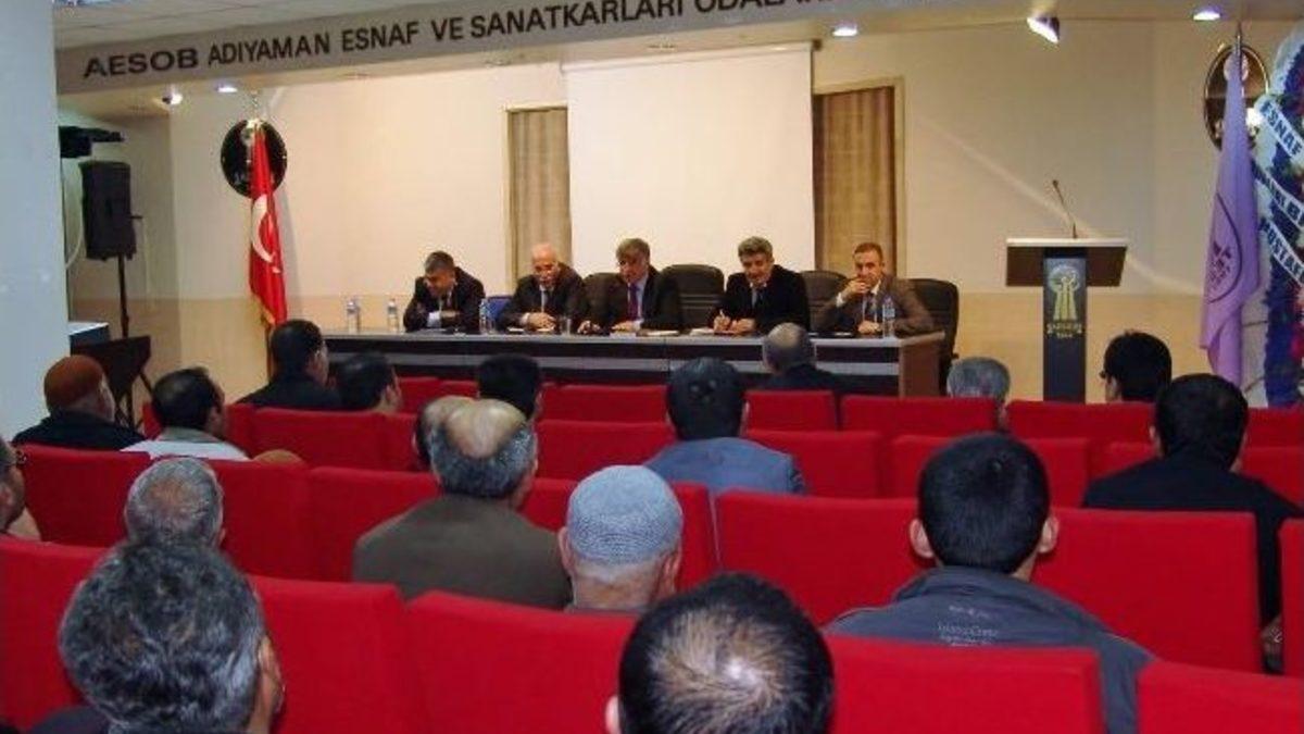 ESOB çok amaçlı salonunda gerçekleştirilen toplantıya; AK Parti Adıyaman milletvekilleri Mehmet Erdoğan, Murtaza Yetiş ile ESOB Başkanı Mustafa Salman ve esnaf katıldı.