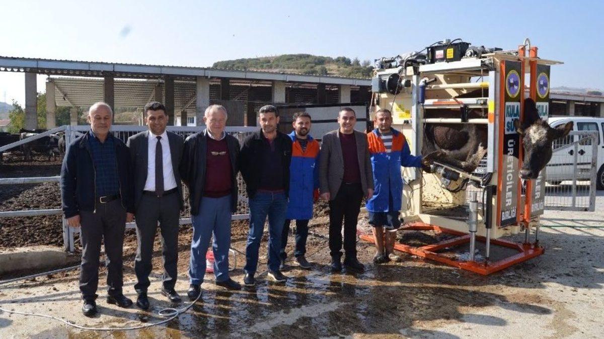 Kula Süt Üreticileri Birliği Başkanı Harun Uysal, büyükbaş hayvanların daha sağlıklı ve verimli olmaları için beslenme kadar ayak ve tırnak bakımlarının da önemli olduğunu belirterek, düzenli yapılan ayak ve tırnak bakımı sonrasında hayvanlarda yüzde 15’e kadar bir verim artışının olduğunun bilimsel olarak kanıtlandığını söyledi.Manisa’nın Kula ilçesinde Süt Üreticileri Birliği, üyelerinin hayvanlarının bakımı için satın aldığı tam otomatik ayak bakımı ve tırnak kesme makinesini hizmete sundu. Birlik hizmet binası önünde gerçekleştirilen makinenin tanıtım programına, Kula Kaymakamı Osman Güven, Kula İlçe Gıda Tarım ve Hayvancılık İlçe Müdürü Bilgin Sarısu, İlçe Milli Eğitim Müdürü Adem Sümen, İlçe Jandarma Komutanı Yüzbaşı Hikmet Aybars ve üyeler katıldı.İlçe genelinde tüm üyelerini kapsayacak şekilde uygulanacak olan tam otomatik tırnak makinesinin iki uzmandan oluşan bir ekiple hayvanlara ayak ve tırnak bakımı hizmetinin verilmeye başlandığını ifade eden Kula Süt Üreticileri Birliği Başkanı Harun Uysal, "Hayvanların daha sağlıklı ve verimli olmaları için öncelikle bakım ve beslenme ile birlikte ayak ve tırnak bakımı oldukça önemlidir. Periyodik ve düzenli bir şekilde yapılan ayak ve tırnak bakımından sonra hayvanlarda yüzde 15’e kadar verim artışı olduğu bilimsel olarak da kanıtlanmıştır. Verimi artırmak amacıyla kapalı sistemle bakımı yapılan yada kış ayı nedeniyle ahırda bakılmak zorunda kalan hayvanların, hareket imkanlarının kısıtlanmasına bağlı olarak, tırnaklarında istenilen oranda doğal aşınma olmaz. Ayrıca uzayan tırnaklar arasında ahır pislikleri toplanarak, tırnak enfeksiyonlarına yol açar. Bu da topallıklara, süt veriminin azalmasına ve hayvanın zayıflamasına, buna bağlı olarak da geniş ölçüde verim kaybına neden olur. Tırnakların belirli aralıklarla bakımı, hayvanın genel sağlığı yanında verimlerini de önemli ölçüde etkiler. Bu nedenle ayak ve tırnak bozukluklarının yol açtığı ekonomik kayıplar çok fazladır. Bakımını yaptırmadığımız özellikle çok keskin kenarlı tırnaklarla, kötü kırılmış tırnaklar ve taban ezikliklerinin tedavi edilmemesi yada yetersiz tedavi zamanla daha büyük bozuklukların oluşmasına neden olur. Böylelikle de düzenli yapılmayan tırnak bakımıyla bacaklarda da anormal duruşlar meydana gelir. Gözardı edilen ayak ve tırnak bakımları ileride topallığa kadar gider. Bu da işletme için çok pahalı bir problem olabilir. Fakat zamanında tırnağa gösterilen ufak bir özen ve düzeltmeler ile gelecekteki büyük bozuklukların önüne geçilmiş olunur. Bu nedenle yılda en az iki kez hayvanlarımızın tırnak bakımını yaptırmalıyız. Bizler de Kula Süt Üreticileri Birliği olarak bu problemlerin önüne geçmeyi hedefliyoruz. Şu an, bir tam otomatik tırnak makinemiz ve iki uzmandan oluşan ekibimizi ilerleyen zamanlarda artırarak hizmetimizi vermeye devam edeceğiz" dedi.