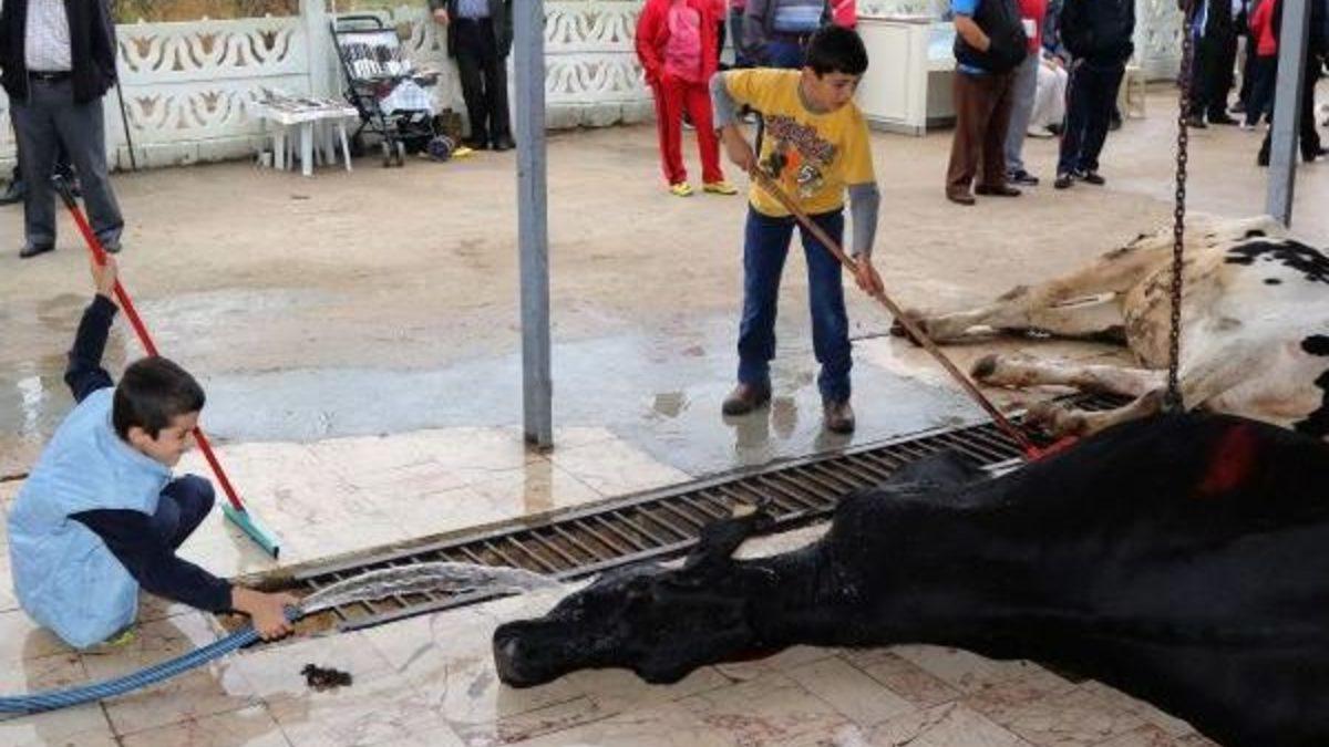 ÇOCUKLAR KURBAN KANI TEMİZLEDİ