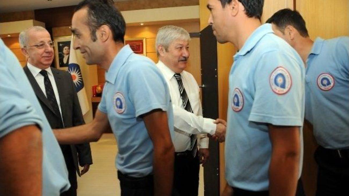 Antalya Büyükşehir Belediye Başkanı Mustafa Akaydın, Kurban Bayramı öncesi son iş gününde belediye personeliyle bayramlaştı. Başkan Akaydın, tüm personelinin bayramını kutladı.Antalya Büyükşehir Belediyesi’nde bayramlaşma, son iş gününde gerçekleştirildi. Antalya Büyükşehir Belediye Başkanı Mustafa Akaydın, başkanlık makamında düzenlenen bayramlaşma töreninde bürokratlar ve çalışanlarla bayramlaştı.Bürokrat ve personele aileleri ve yakınlarıyla birlikte iyi bir bayram geçirmeleri temennisinde bulunan Başkan Akaydın, 9 günlük bayram tatilini en iyi şekilde geçirmelerini istedi. Başkan Mustafa Akaydın, bayramların toplumsal yönden sevginin, hoşgörünün, kardeşliğin, barışın yaşandığı günler olduğunu hatırlatarak, herkesin bayramını kutladı.