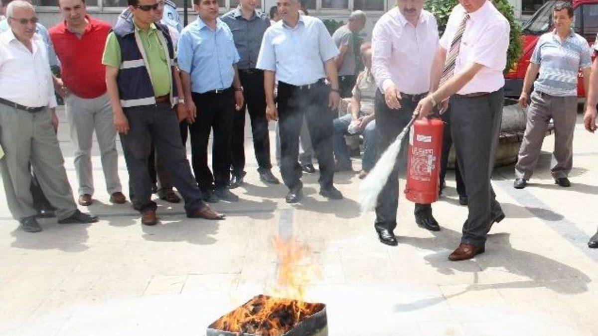 Büyükşehir Belediyesi Sivil Savunma Uzmanı Selim Yazıcı, SASKİ Sivil Savunma Uzmanı Gülsen Önal ve İtfaiye Daire Başkanlığı Grup Amiri Çetin Çakır, belediye çalışanlarına yangına müdahale konusunda bilgi aktardı. Selim Yazıcı yangına müdahalede rüzgara dikkat edilmesinin önemini vurgularken, Çetin Çakır ise yangın esnasında çanta ve ceketlerin alınarak kaçılması, yangına müdahale için hemen yangın söndürme tüplerine yönelmesi gerektiğine işaret etti. Düzenlenen eğitimler sonrasında Büyükşehir Belediyesi önünde tatbikat yapıldı. Tatbikatta çıkarılan mini yangın, ilk önce uzman personeller daha sonrada belediye personeli tarafından söndürüldü.