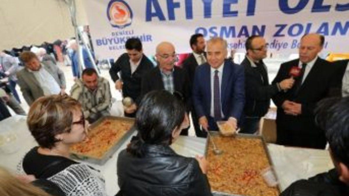 Denizli Büyükşehir Belediyesi, Muharrem ayı nedeniyle 10 bin kişilik aşure dağıttı.Denizli Büyükşehir Belediyesi, Muharrem ayı nedeniyle vatandaşlara aşure ikramında bulundu. Bayramyeri Meydanı’nda düzenlenen aşure hayrına Denizli Büyükşehir Belediye Başkanı Osman Zolan, Büyükşehir Belediyesi Meclis Başkan Vekili Ali Değirmenci, davetliler ve çok sayıda vatandaş katıldı. Cuma namazı sonrasında yapılan aşure hayrında 10.000 kişilik aşure kısa sürede tüketildi. Aşure hayrında kazanın başına geçen Başkan Zolan, vatandaşlara aşure ikram etti. Daha sonra basın mensuplarının sorularını yanıtlayan Başkan Zolan, “Muharrem ayı Müslümanlar için kutsal aylardan biridir. Muharrem ayı bereket ayıdır. Birlik ve beraberlik noktasında bir araya getiren kaynaştıran inancımızdan bu yana gelen bir gelenektir. Biz de aynı şekilde bu manevi değerimizi yaşatmak ve çocuklarımıza, gelecek nesillerimize anlatmak adına her sene olduğu gibi bu yılda aşure hayrımızı vatandaşlarımızla yapıyoruz” dedi.Aşurenin içinde bulunan gıdaların bir arada oluşu gibi birlik ve beraberliğin bozulmamasını temenni eden Başkan Zolan, şöyle konuştu: “Muharrem ayı vatanımıza, milletimize, Denizlimize hayırlar getirsin. Tüm İslam aleminin Muharrem ayı mübarek olsun. İnşallah kardeşliğimiz, huzurumuz daim olsun. Bu geleneğimizin gelecek nesillere de ulaşması adına bu güzelliği hep beraber paylaşarak sürdürelim” diye konuştu. Yağışlı havaya rağmen aşure ikramına çok sayıda vatandaşın katılımı ise dikkat çekti. Başkan Zolan, daha sonra Bayramyeri esnafını ziyaret etti.