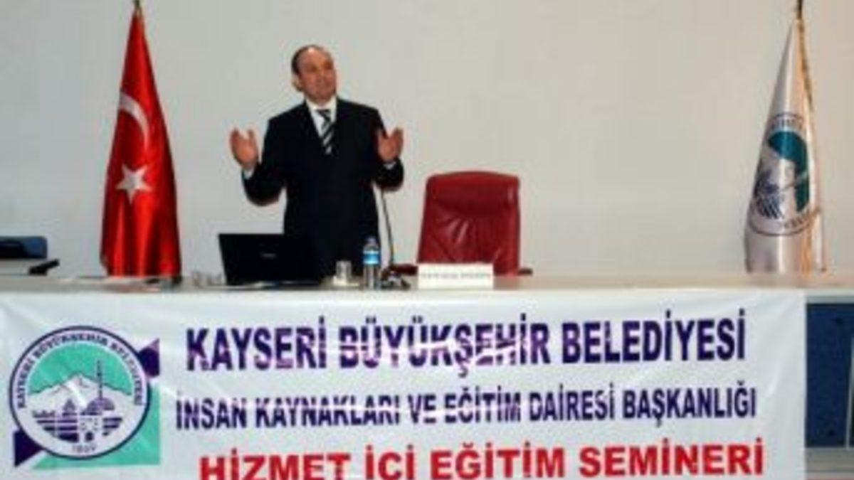 Kayseri Büyükşehir Belediyesi İnsan Kaynakları ve Eğitim Dairesi Başkanlığı tarafından belediyede görevli şube müdürleri ve şeflere yönelik hizmet içi eğitim semineri düzenlendi. ''Ekip Ruhu ve Takım Çalışması'' başlıklı seminerin konuşmacısı, Marmara Üniversitesi Siyasal Bilgiler Fakültesi Dekanı Prof. Dr. Recep Bozlağan oldu.