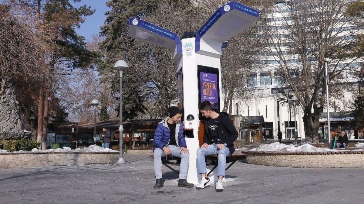 Büyükşehir Belediyesi, güneş enerjili şarj istasyonu dönemini başlattı. İlk etapta iki noktaya konulan şarj istasyonları ile telefonlar ücretsiz olarak şarj edilebilecek.Büyükşehir Belediyesi, güneş enerjisiyle çalışan iki ayrı modern şarj istasyonunu hizmete sundu. İlk etapta Büyükşehir Belediyesi yanındaki park alanı ile Kurşunlu Parkı’na konulan şarj istasyonları farklı telefonlara uyumlu şarj kabloları ile hizmet verecek.Kayseri’de yaşayanlar telefonlarını şarj istasyonlarından ücretsiz olarak şarj ettirebilecekler. Gündüz güneş enerjisi ile çalışan şarj istasyonlarına elektrik bağlantısı da yapıldı. Böylece istasyonların geceleri de hizmet verebilmesi sağlandı.
