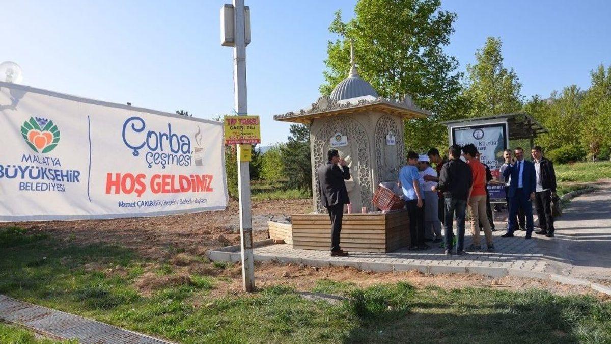 Malatya Büyükşehir Belediyesi tarafından İnönü Üniversitesi Kampüsünde çorba ikramı yapılıyor.Bilgeler Yolu’nun başlangıç noktasına kurulan İkram Çeşmesi’nden hafta içi her sabah çorba ikramı sunuluyor. Daha önce Çevre Yolu Üniversite Otobüs Durakları yanında hizmet veren İkram Çeşmesi, Üniversite öğrencilerinin daha kolay yararlanabilmeleri için kampüse taşınarak 20 Mart’tan itibaren kampüste hizmet veriyor.Büyükşehir Belediyesi Sağlık ve Sosyal Hizmetler Dairesi Sosyal Yardım Şube Müdürlüğünün organizasyonuyla günlük 750 kişiye çorba ikramı sunuluyor. Sabah saatlerinde derslerine yetişmek için kampüse gelen üniversiteliler, sunulan ikramla pratik bir şekilde kahvaltı yapma imkanı buluyorlar. Öğrenciler, sunulan ikramdan dolayı oldukça memnun oluyor. İkram Çeşmesi’nin üniversitede hizmet vermesi dolayısıyla Malatya Büyükşehir Belediyesi Genel Sekreter Yardımcısı Ertan Mumcu, kampüse gelerek verilen hizmeti yerinde gördü. İnönü Üniversitesi Rektör Yardımcıları Prof. Dr. Nusret Akpolat ve Prof. Dr. Abdulkadir Baharçiçek de İkram Çeşmesine gelerek hep birlikte öğrencilere çorba ikram etti.