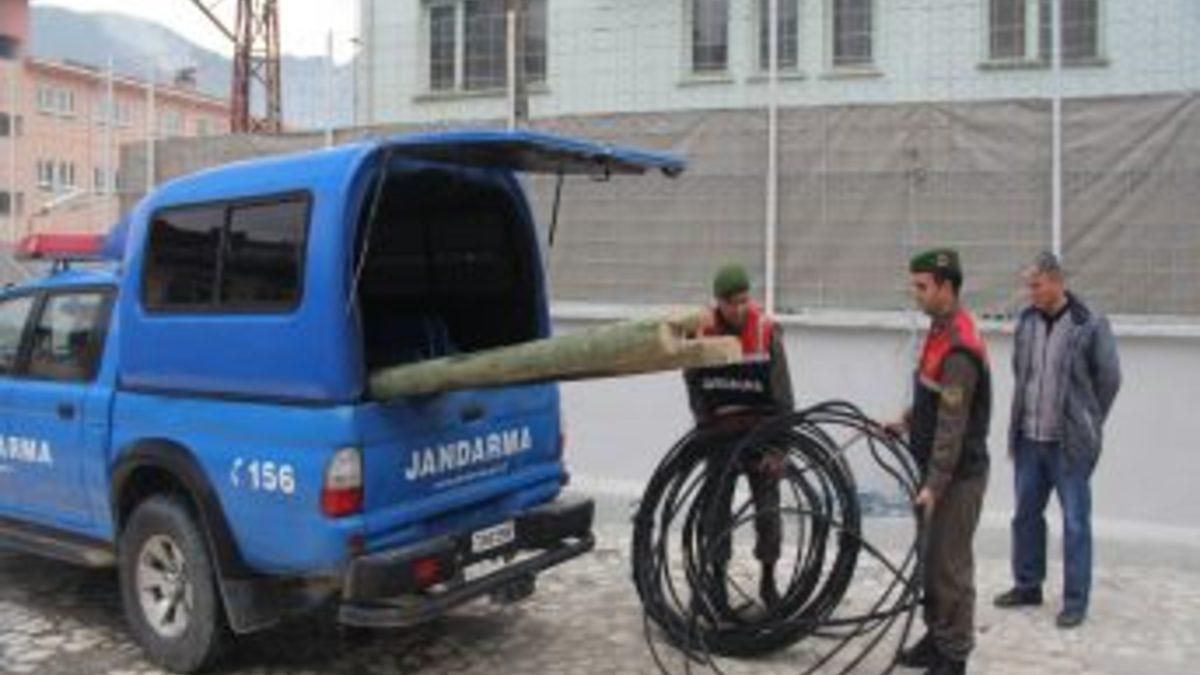 Gaffaruşağı köyü Tatartepesi mevkiinde Türk Telekom’a ait 600 metre kablonun çalındığını ihbarının ardından harekete geçen jandarma ekipleri, şüpheli K.K. ve O.K.’yi olay yerinde 81 kilogram ağırlığındaki bakır kabloları yaktıkları esnada suçüstü yakaladı. Şahısların evlerinde yapılan aramada ise 2 adet 3 metre boyunda telefon direği ve bu direkleri kesmekte kullandıkları 1 adet hızar motoru ele geçirildi. Malzemelere el konulurken aynı gün adli makamlara sevk edilen şüphelilerden O.K. ifadesinin ardından serbest bırakıldı, diğer şüpheli K.K. ise tutuklandı.