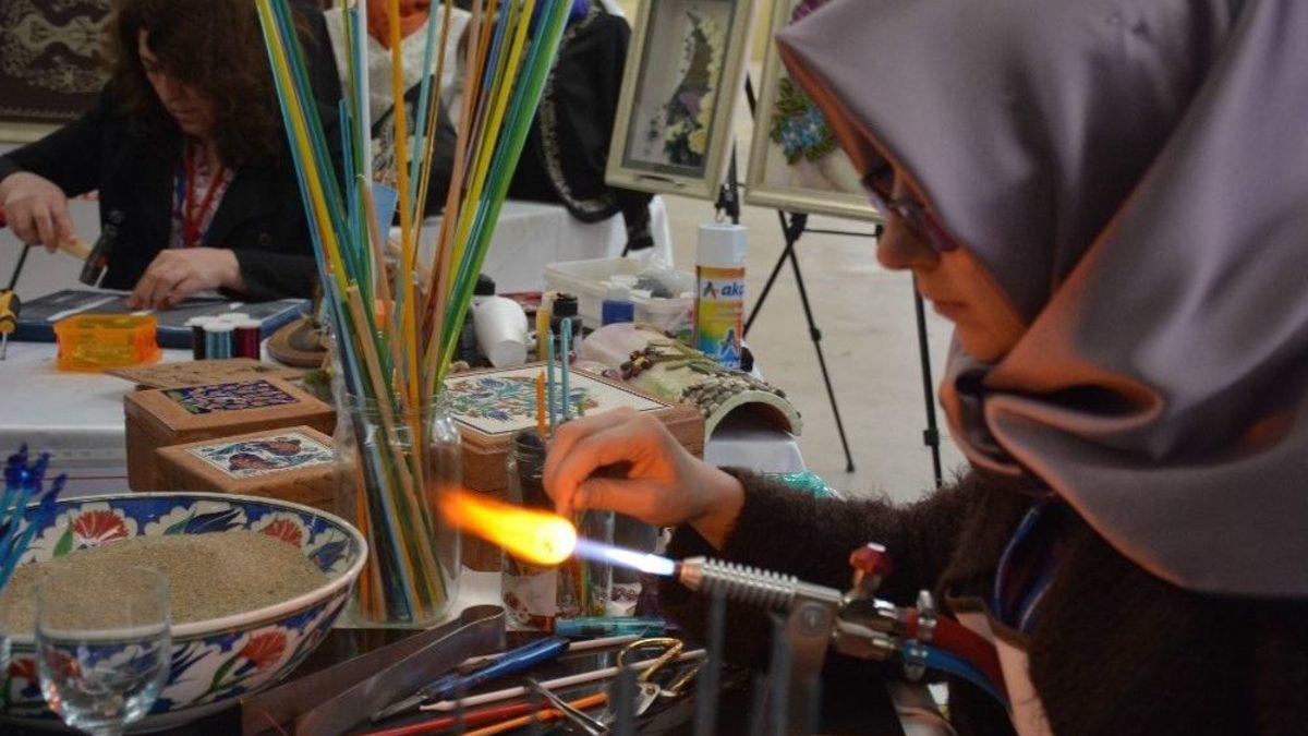 Bilecik’te cam boncuk sanatını yaşatmaya çalışan Kübra Uygun, sanata vatandaşların ilgisinin büyük olduğunu söyledi.Bu yıl 2’inci düzenlenen Öğrenme Şenliği Bilecik Hürriyet Mahallesinde bulunan Kapalı Pazar giyim bölümünde düzenlenirken, farklı iş kollarından kurulan stantlardan en büyük ilgiyi cam boncuk sanatı aldı. Bozüyük Halk Eğitim Merkezinde Usta Öğreticilik yapan Kübra Uygun, cam boncuk sanatına vatandaşların ilgisinin büyük olduğunu belirterek, “İstanbul Üniversitesi Meslek Yüksekokulu Seramik Cam ve Çinicilik bölümünü bitirdim. Biz okuldayken bu yaptığım işi ufak tefek gördük. Daha sonra Eskişehir Odunpazarı yapılan bu sanat hep ilgimi çekti. Orada kursuna katıldı. Şimdi Bozüyük Halk Eğitim Merkezi’nde usta öğreticilik yapıyorum. Orada da kursuma devam etmeye başladım. Şimdi öğrencilerim var ve öğrencilerimle birlikte cam boncuk sanatını yapıyoruz. 12 tane öğrencim var. Ama dönem, dönem öğrencilerim değişiyor. Cama ilgi büyük. Ama tabi insanlara biraz zor geliyor. Ama seviyorlar o şekilde. Çok iyiydi. Hepsi denemek istediler. Çocuklara da farklı geliyor, insanlara da farklı geliyor camın erimesi, şekillendirilmesi” dedi.Kurulan stantta vatandaşlar, Bozüyük Halk Eğitim Merkezinde Usta Öğreticilik yapan Kübra Uygun’un elinden hayat bulan cam işlerini büyük bir merakla izlerken, camdan nazar boncuğundan tespihe, kuğudan balık yapımına kadar eserler göz kamaştırdı.