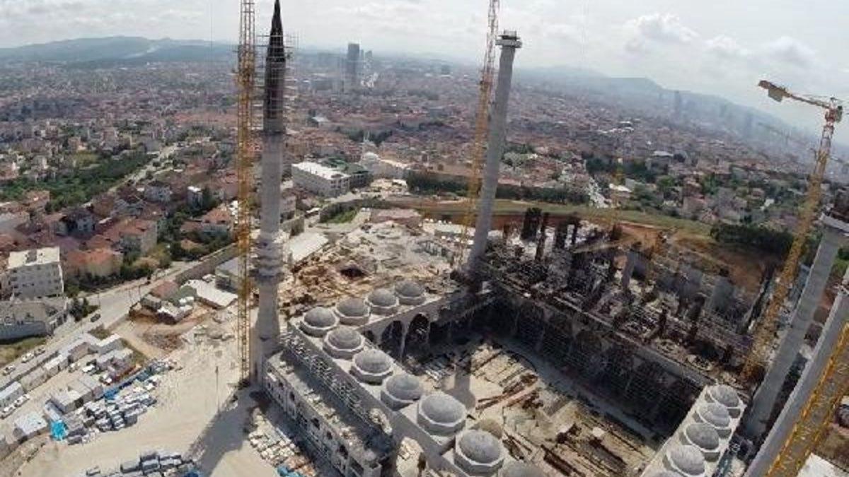 Kaba inşaatı yaklaşık 125 bin metrekare alanda devam eden caminin havadan yapılan çekimlerinde kompleksin artık ortaya çıkmaya başladığı görülürken minareler de göğe doğru yükseliyor.