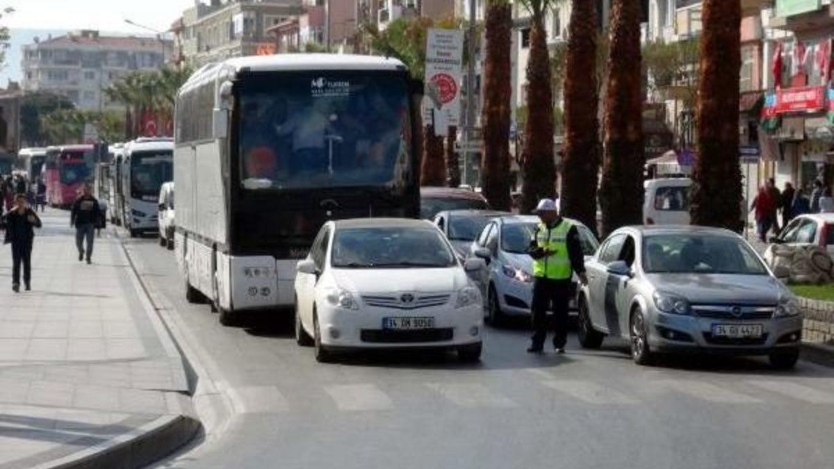 Ersan KÜÇÜKKURU/ÇANAKKALE, Geçen hafta Kara Savaşları'nın 100'ncü yıldönümü anma törenleri gerçekleşen Çanakkale'de Gelibolu Yarımadası'nı gezmek isteyen gruplar, hafta sonunu fırsat bilerek kente geldi. Çanakkale'den deniz yoluyla yarımadaya geçmek isteyen ziyaretçilerin bulunduğu otobüsler ve tatil için Tekirdağ, İstanbul yönüne gidecek olan vatandaşların araçları şehir iskelesinde zaman zaman uzun kuyruklar oluşturdu. Trafik ekipleri şehir içi trafiğinde aksama yaşanmaması için, Kayserili Ahmet Paşa Caddesi'nin Mehmetçik Bulvarı ile kesiştiği ve iskele yönüne giden yolu trafiğe kapattı. Demircioğlu Caddesi'nin de bir bölümünde de sadece araba vapuruna binmek isteyen araçlar için trafik akışı sağlandı.