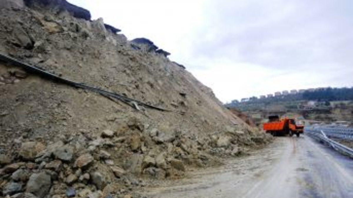 Çanakkale-İzmir karayolunun 18. kilometresindeki viyadük çevresinde dün akşam meydana gelen heyelanda yola düşen toprak ve...