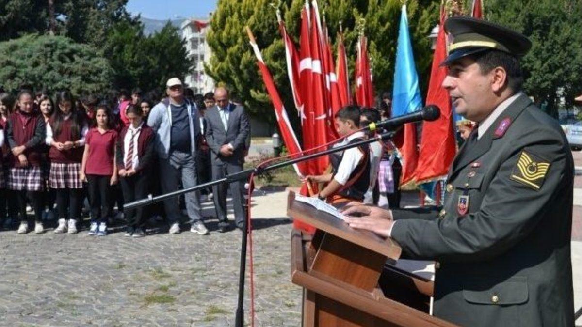 Mersin'in Bozyazı ilçesinde, '18 Mart Çanakkale Zaferi'nin 99. Yıldönümü ve Şehitleri Anma Günü' nedeniyle bir dizi etkinlik düzenlendi.Bozyazı Cumhuriyet Meydanı'ndaki törene Kaymakam Mustafa Erkayıran, Garnizon Komutan Mustafa Yılmaz, Belediye Başkan Vekili Sezai Hasdeniz, daire amirleri, sivil toplum kuruluşu temsilcileri, vatandaşlar ve öğrenciler katıldı. Atatürk Anıtı'na çelenk sunulması, saygı duruşu ve İstiklal Marşı'nın okunmasının ardından günün anlam ve önemini belirten konuşmayı Jandarma Astsubay Başçavuş Ali Orzan yaptı. Orzan, "Çanakkale Zaferi gibi büyük bir mirasa sahip olan bir millet, onunla ne kadar iftihar etse azdır. Böyle bir iman ve ahlak destanı çıkarabilen bir toplum, en zor şartlarda bile daima toparlanıp dirilme kabiliyetine sahip demektir. En acı, en yoğun imkansızlıkların yaşandığı yıllarda, kurtuluş ümidimizin meşalesi olan ve yolumuzu aydınlatan bu manevi mücadele sonsuz bir denizdir. O denizdir ki, her hatırlayışımızda geçmişi bize getiren, tek başına bu günkü ve yarınki nesillere tarih, vatan sevgisi, milli şuur ve milli beraberlik için gerekli bilgi ve hassasiyeti kazandıracak kadar büyüktür. Tarihin her sayfasını aydınlatan değerlerimize saldıran uluslara karşı onurumuza sahip çıkma mücadelemizin her bir anına yazılan böyle bir zafer, tarih sahnesinde başka hiçbir ulusa nasip olmamıştır” dedi.Çanakkale Savaşı'nın, sadece Türk tarihinin değil yakın dünya tarihinin en önemli savaşlarından biri olduğunu, bu vatanın yetişmiş aydın insana en fazla ihtiyaç duyduğu bir dönemde 253 bin gencin, milliyetperver aydınını toprağa verdiğini ifade eden Orzan, “Adları ne olursa olsun; Bulancaklı İdris, Kınalı Hasan, Cideli Mahmut Çavuş, Bigalı Mehmet, İstanbullu Mektepli Mehmetler aynı isimde, aynı yürekte, aynı inançta, aynı duada yurdun dört bir yanından buluşmak için gelmiş ve aynı yerde, aynı şerefte, aynı mekanda buluşmuş, Çanakkale’den geçit vermeyip şehitlik mertebesine ulaşarak canlarını vermişler ve tüm dünyaya Çanakkale’nin geçilmeyeceğini ispat etmişlerdir. Başta Gazi Mustafa Kemal Atatürk olmak üzere tüm silah arkadaşlarını rahmet ve minnetle anıyor, gazilerimize şükranlarımızı sunuyorum. Şehitlerimizin ruhları şad olsun” diye konuştu.Şehit Murat Namdar Ortaokulu ve Kökobası Ortaokulu öğretmen ve öğrencilerince hazırlanan ikinci tören ise, Bozyazı Anadolu Lisesi Toplantı Salonu'nda yapıldı. Günün anlam ve önemini anlatan konuşmayı Kökobası Ortaokulu Müdürü Tahir Ünal yaptı. Yapılan konuşmanın ardından şiir, oratoryo, Çanakkale Savaşı'nda geçen bir olayı anlatan tiyatro gösterisi ve güne uygun öğrenci korosunun okuduğu türküler sonrası Kaymakam Mustafa Erkayıran’ın öğretmenleri kutlaması ile tören sona erdi.