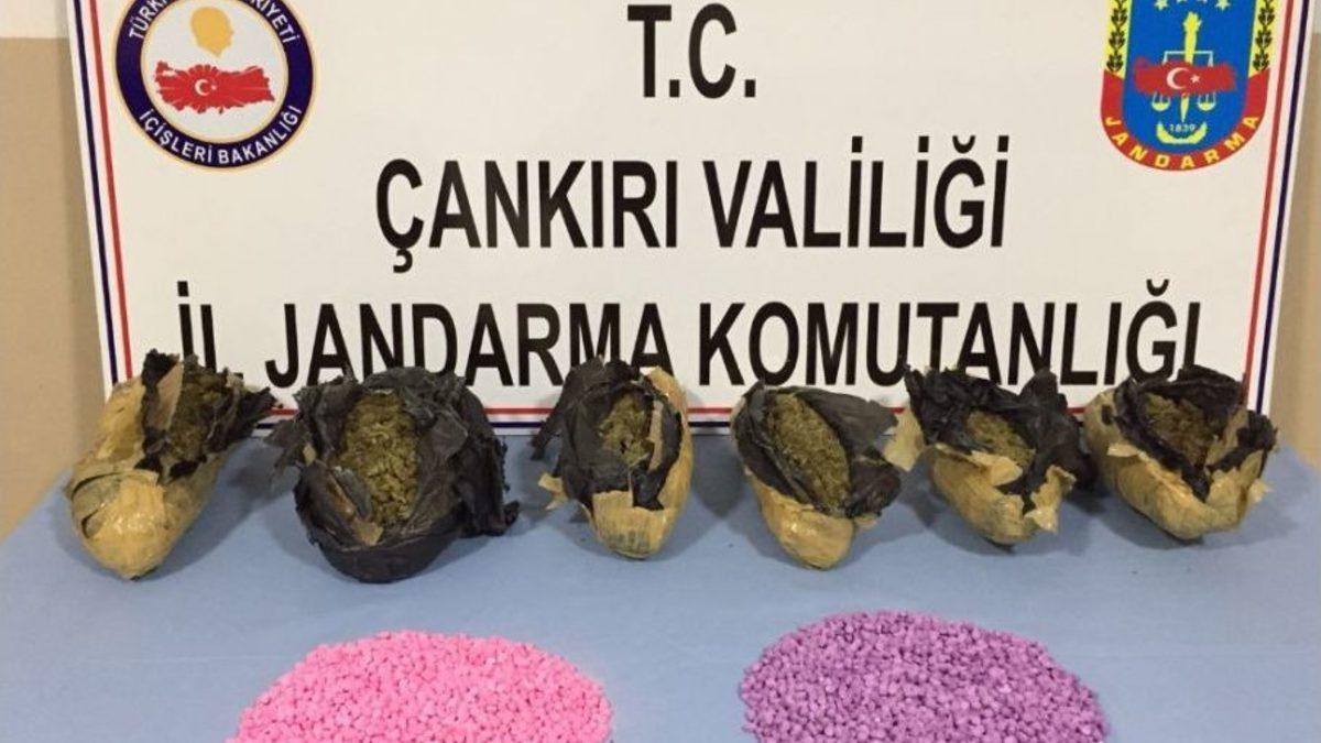 ÇANKIRI (İHA) – Çankırı’nın Ilgaz ilçesinde bir araçta arama yapan jandarma ekipleri, dedektör köpeği yardımıyla aracın stepnesine gizlenmiş piyasa değeri 300 bin TL olan uyuşturucu ele geçirdi.Edinilen bilgiye göre, Çankırı İl Jandarma Komutanlığı unsurlarınca İstanbul’dan Doğu Karadeniz Bölgesi’ne yüklü miktarda uyuşturucu madde sevki yapılacağı bilgisinin alınması üzerine, Çankırı’nın Ilgaz ilçesi Yaylaören köyü mevkisi D-100 karayolu üzerinde yapılan yol kontrol ve arama faaliyetinde şüpheli bir otomobil durduruldu. Narkotik dedektör köpeği yardımıyla yapılan aramada aracın stepnesine gizlenmiş vaziyette piyasa değeri yaklaşık 300 bin lira olan, 3 bin 200 gram skunk esrar maddesi ve 5 bin adet sentetik uyuşturucu hap ele geçirildi. Araçta bulunan Z.Ö., A.A., M.T. ve S.Ş. isimli 4 şahıs gözaltına alındı. Gözaltına alınan şahıslardan S.Ş. isimli şahsın M.A. adına düzenlenmiş sahte kimlik belgesi kullandığı, ‘resmi belgede sahtecilik ve PTT, banka veya kamu kurumlarında dolandırıcılık’ suçlarından arandığı tespit edildi.Olayla ilgili Ilgaz Cumhuriyet Savcılığınca soruşturma başlatıldı.