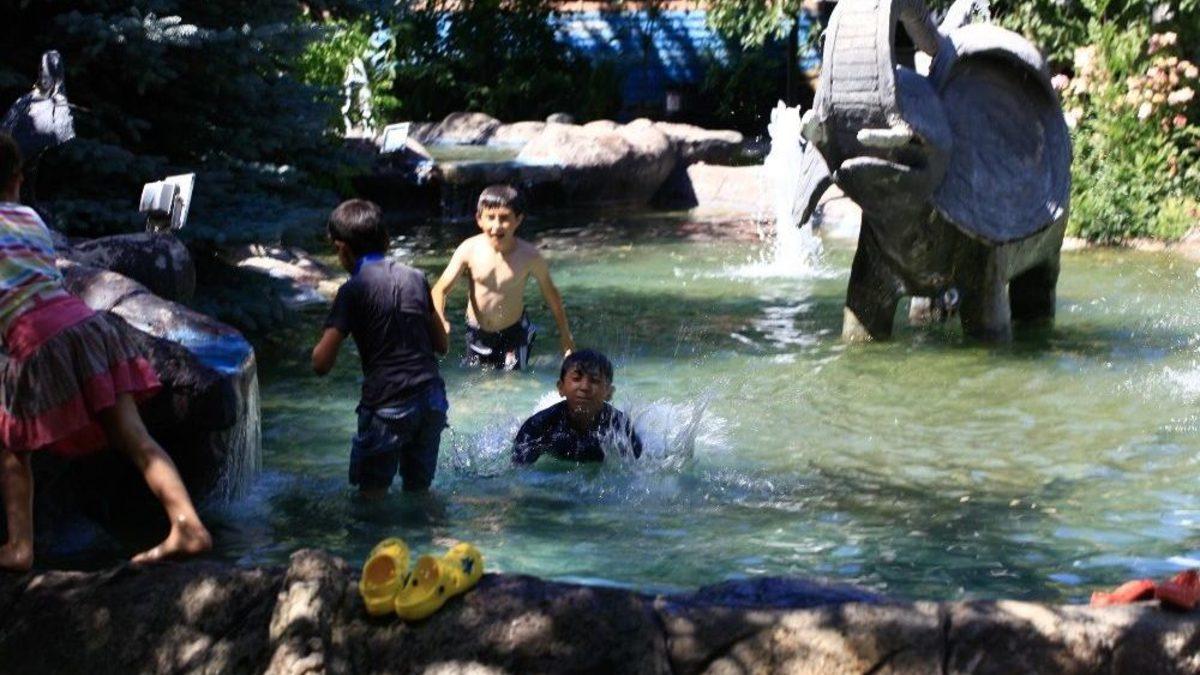 Çöl sıcaklarının etkisini sürdürdüğü Çankırı’da sıcaktan bunalan çocuklar sokaklardaki süs havuzlarında serinledi.Çankırı’da aşırı sıcaklardan bunalan vatandaşlar çareyi şehrin park ve bahçelerinde buldu. Vatandaşlar sıcaktan kaçarak kendilerini park alanlarındaki gölgeliklere ve ağaç altlarına atarken, çocuklar ise tehlikeli serinleme yöntemini tercih etti. Süs havuzuna giren çocuklar çöl sıcaklarına karşı serinlemeye çalışırken, vatandaşların ise sık sık park ve bahçelerdeki çeşmeleri kullanarak serinlemeye çalışmaları dikkat çekti.Tehlikeli ve yasak olmasına rağmen serinlemek için parklardaki süs havuzlarını kullanan çocuklar buralarda yüzmelerine izin verilmediğini belirterek, “Ne yapalım, hava çok sıcak. Burada mecbur yüzüyoruz” şeklinde konuştular.Köyündeki sıcaklığın daha yüksek olması sebebiyle Çankırı’ya geldiğini söyleyen bir vatandaş da, “Köy yanıyor. Sular akmıyor. Sivrisinekler her tarafımızı ısırdı. Bir hafta köyde kalmayı planlıyordum, hemen kaçtım” ifadelerini kullandı.Aşırı sıcaklardan memnun olanlar da var. Sıcak havanın iyi olduğunu belirten bir vatandaş, “Sıcak iyi iyi. Sıcaktan bir zarar gelmez. Ne gelirse soğuktan gelir” dedi.