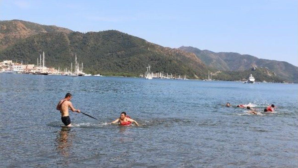 Muğla’nın Marmaris ilçesinde Turizm Haftası etkinlikleri kapsamında GETOB tarafından düzenlenen cankurtaran yarışması renkli görüntülere sahne oldu.Ege Bölgesi’nde ilk defa düzenlenen yarışmada bazı Cankurtaranların yüzme ve kurtarma etaplarını güçlükle bitirerek kendilerini karaya zor attığı görüldü. Marmaris’te turizm haftası etkinlikleri sürüyor. Güney Ege Turistik Otelciler ve İşletmeciler Birliği, Bronz ve Gümüş bröveli Cankurtaran olarak işletmelerde görev yapan personeli motive etmek ve bölge tanıtımına katkı sağlamak amacıyla cankurtaran yarışması düzenledi. Ege Bölgesi’nde ilk defa düzenlenen yarışmaya otellerde görev yapan 16 cankurtaran katıldı. Marmaris Belediyesi önündeki halk plajında gerçekleşen yarışmayı Marmaris İlçe Turizm Müdürü Yakup Baykan, Marmaris Gençlik Spor Müdürü Ahmet Kocabıyık, GETOB Başkanı Bülent Bülbüloğlu da izledi. Yüzme, yüzme ve koşu, boğulan kazazedeyi kurtarma çalışması ve bayrak indirme gibi 4 etaptan oluşan yarışma ,GETOB Başkanı Bülent Bülbüloğlu’nun verdiği startla başladı. Yarışmacıların sudaki etaplarda oldukça zorlandığı gözlendi. Bazı cankurtaranlar yüzme ve kurtarma yarışması sonunda sudan güçlükle çıkıp kendilerini kumsala attı.Uzun süre kendine gelemeyen yarışmacılar kumsala sere serpe uzanıp yorgunluklarını atmaya çalıştı. GETOB Başkanı Bülent Bülbüloğlu yarışma öncesi yaptığı açıklamada, “Cankurtaran personelinin eğitim almalarına öncü olduktan sonra bölgenin tanıtımı için farklı bir yarışma düzenlemeye karar verdik. Turizm haftası etkinlikleri kapsamında güzel bir aktivite olduğuna inanıyoruz” dedi.Marmaris Su Sporları kooperatifi Mehmet Salih Tunç ise, "Bu etkinliği cankurtaran personeline hareket kabiliyetlerini geliştirmek için düzenledik" dedi.Kıyasıya geçen yarışların sonunda kategorilerinde dereceye giren yarışmacılara kupa ve madalya verildi. Genel kategoride Mehmet Tunç birinci, Erol Yıldırım ikinci,Abdürrahim Geçer’de üçüncü olurken, yarışmacılar çeşitli tesislerde konaklama ile ödüllendirildi. Ayrıca en başarılı yarışmacının istihdam edildiği Miami Beach Oteli’ne de özel ödül verildi.
