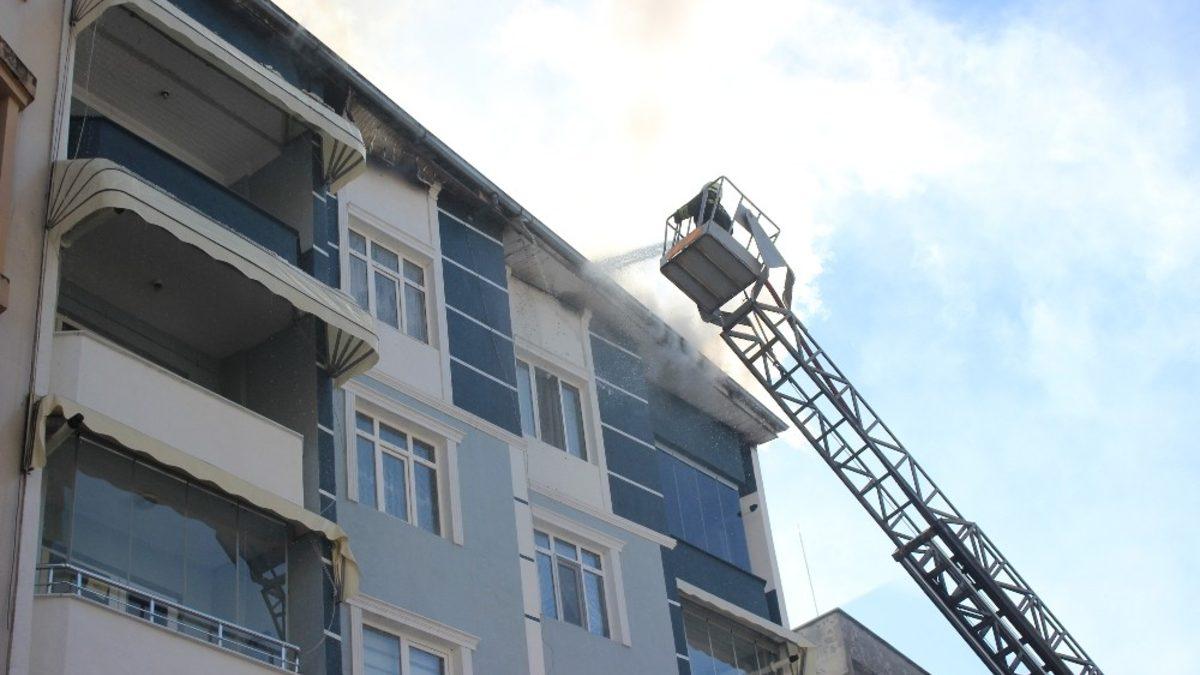 Çıkan yangın sonucu can kaybı yaşanmazken, bina çatısında maddi hasar meydana geldi.