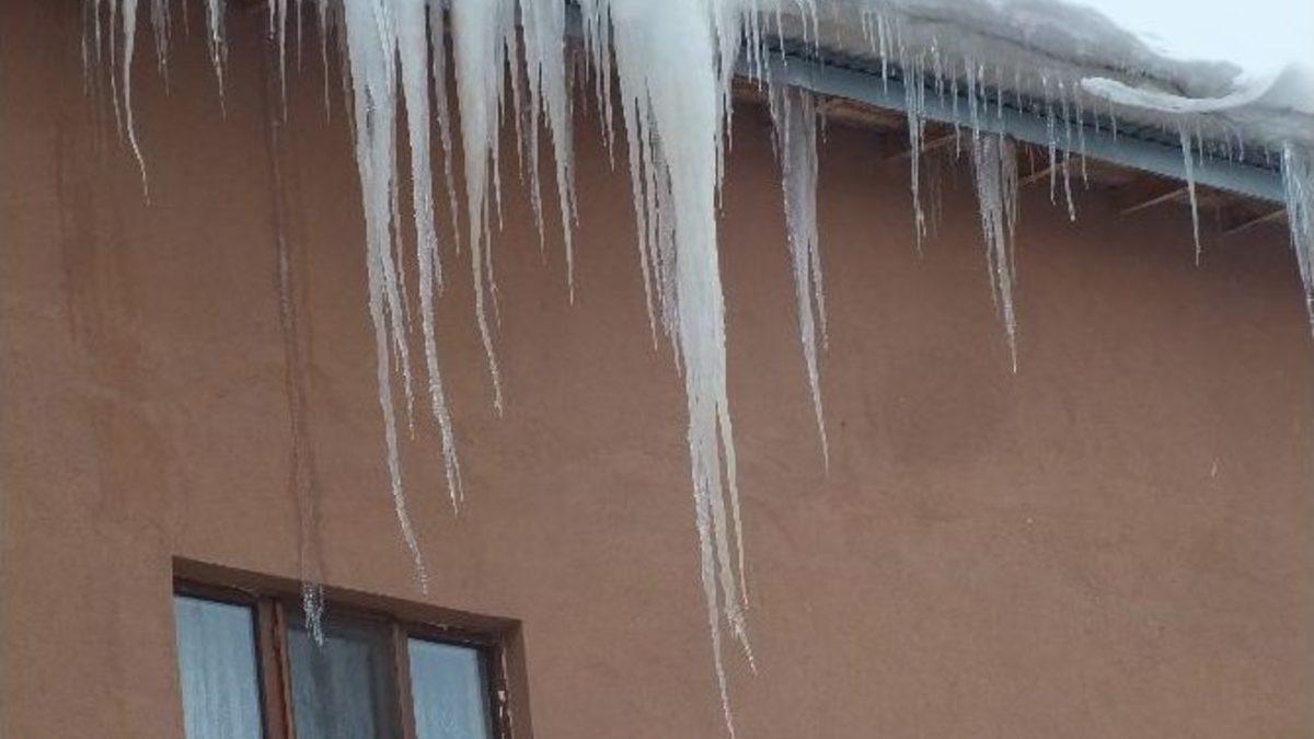 Muş’un Malazgirt ilçesinde binaların çatılardan sarkan iki metrelik buz sarkıtları tehlike saçıyor.Malazgirt’te etkili olan kar yağışı ve soğuk havanın ardından çatılarda oluşan iki metrelik buz sarkıtları, yayalar ve sokak aralarında park edilen araçlar için büyük tehlike oluşturuyor. Özellikle işlek yerlerde bulunan binalardan sarkan ve boyu iki metreyi bulan buzlar, olası bir kazaya davetiye çıkarıyor. Vatandaşlar, soğuk havanın hayatı olumsuz etkilediğini belirterek, "Malazgirt’e kış mevsimi oldukça soğuk ve bol kar yağışlı geçiyor. Bu sebeple çatılarda buz sarkıtları oluşuyor. Bu yıl boyları iki metreyi geçen buz sarkıtlarını ilk defa gördük. Her ne kadar buzlar belediye ekipleri ve vatandaşlar tarafından kırılsa bile yine çatılardan buz olmuyor. Buz sarkıtları özellikle yayalar için tehlike saçıyor. Bu konuda herkesin dikkatli olması gerekiyor. Bazı çatılarda oluşan uzun buz kütleleri, vatandaşların üstüne düşmesi halinde istenmeyen sonuçlar doğurabilir" şeklinde konuştular.