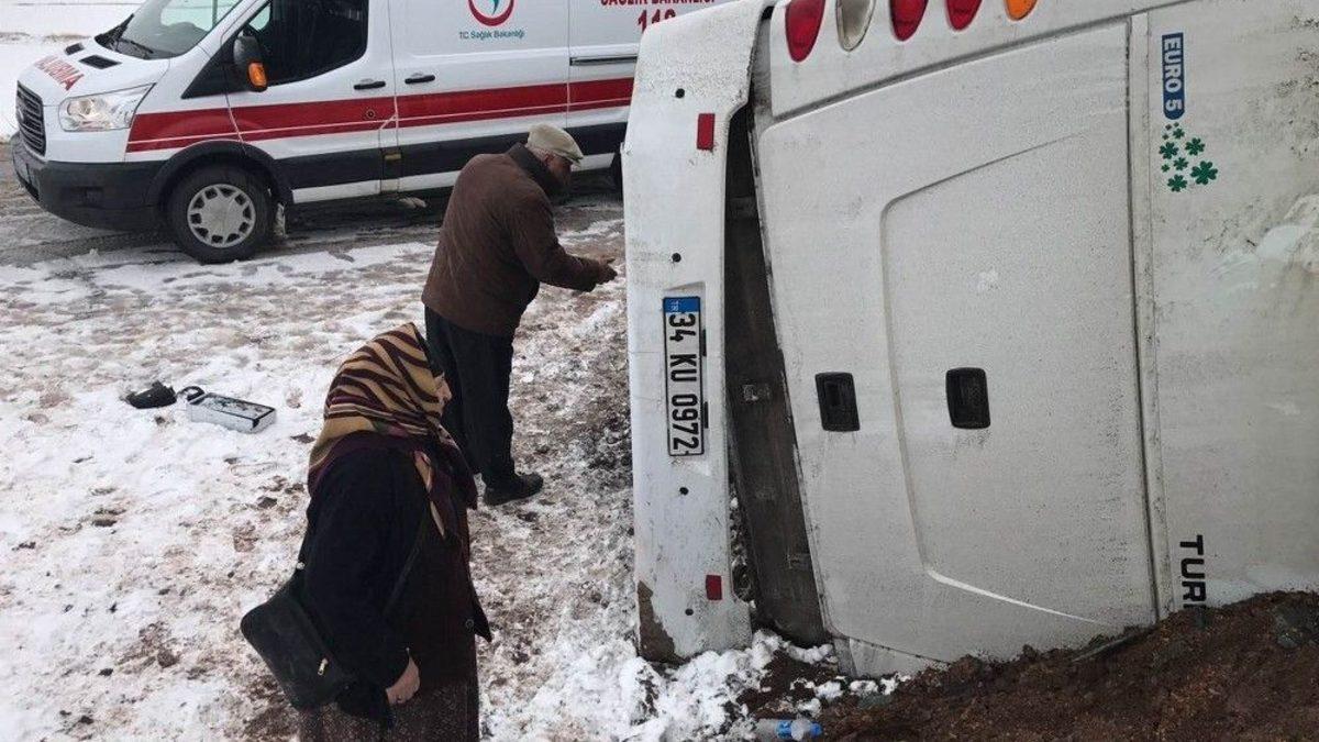 Sivas’ın Kangal ilçesinde cenazeden dönen yolcu midibüsünün kar kontrolden çıkarak devrilmesi sonucu meydana gelen kazada 2 kişi öldü, 5 kişi yaralandı.Edinilen bilgiye göre kaza, saat 17.00 sıralarında Sivas-Malatya karayolu Kangal ilçesine 4 kilometre uzaklıkta bulunan Arpalı köyü yakınlarında meydana geldi. Cenazeden dönen Akil Satılmış idaresindeki 34 KU 0972 plakalı yolcu midibüsü kar yağışı nedeniyle kayganlaşan yolda sürücüsünün direksiyon hakimiyetini kaybetmesi sonucu devrildi. Kazanın haber verilmesinin ardından olay yerine çok sayıda ambulans ve jandarma ekibi sevk edildi. Kazada midibüsün altında kalan Ayşe Doğan Yılmaz (71) ve Adıgüzel Tunalı (66) olay yerinde hayatını kaybetti. Midibüste bulunan 16 yolcudan Cafer Doğanyılmaz, Satı Yılmaz, Ali Kınalı, Erdal Doğanyılmaz, Sülayman Doldur da yaralandı.Yaralılar 112 sağlık ekiplerinin müdahalesinin ardından Kangal Devlet Hastanesi’ne kaldırıldı. Yaralıların sağlık durumlarının iyi olduğu ve Malatya’nın Arapgir ilçesinden yakınlarının cenazesinden döndüğü öğrenildi. Kazayla ilgili soruşturma başlatıldı.