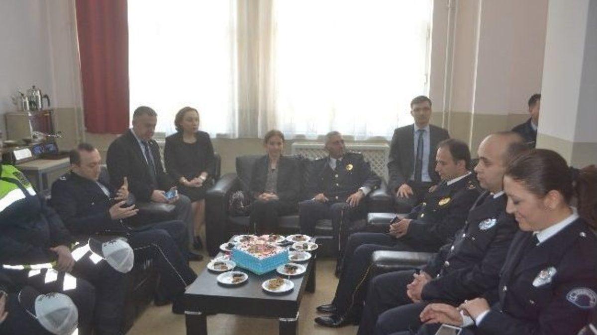 Tekirdağ'a bağlı Çerkezköy İlçe Emniyet Müdürü Murat Ogan ve personeli, Polis Haftası kapsamında Müjgan-Serkan Karagöz Özel Eğitim Uygulama Merkezi ve İş Okulu’nu ziyaret etti. Öğrencilere polislik mesleğini anlatan Çerkezköy İlçe Emniyet Müdürlüğü ekipleri, ziyarette öğrencilere çeşitli hediyeler vermeyi de ihmal etmedi.Tekirdağ’ın Çerkezköy İlçesi Emniyet Müdürlüğü personeli, Polis Haftası etkinlikleri kapsamında Müjgan-Serkan Karagöz Özel Eğitim Uygulama Merkezi ve İş Okulu’nu ziyaret etti. Ziyarete Çerkezköy İlçe Emniyet Müdürü Murat Ogan, İlçe Emniyet Müdür Yardımcısı Adem Tuncel, Trafik Tescil ve Denetleme Büro Amiri Ekrem Çiçek, Toplum Destekli Polis Büro Amir Vekili Komiser Yardımcısı Kerem Ergelmiş ile polis memurları katıldı.Öğrenciler ile konferans salonunda ile bir araya gelen polisler, öğrencilere polislik mesleğini anlattı. Polisin, vatandaşların can ve mal güvenliğini korumakla sorumlu olduğunu belirten İlçe Emniyet Müdürü Murat Ogan, polisliğin özveri isteyen bir meslek olduğunu ifade etti.Çevrede şüpheli görülen kişi, araç veya durumların 155 Polis İmdat hattına bildirilmesinin suçların önlenmesi ve suçluların yakalanması için önemli olduğunu kaydeden İlçe Emniyet Müdür Yardımcısı Adem Tuncel, "Polis olmak için üniforma giymeye gerek yok. Sizler de okullarınızda kötülük yapan, okul çevresinde şüpheli hareketlerde bulunanları, kötülük yapanları uyararak ya da polise haber vererek bir nevi polislik yapmış olursunuz" dedi.Trafik Tescil ve Denetleme Büro Amiri Ekrem Çiçek ise ilçede özellikle ana caddelerde trafiğin olmaması, kazaların en aza inmesi için çalıştıklarını ifade etti. Toplum Destekli Polis Büro Amiri Vekili Kerem Ergelmiş de toplum Destekli Polislik hakkında bilgi vererek, "Toplum Destekli Polislik, suç oluştuktan sonra harekete geçen değil, sizlerin canına, malına zarar gelmeden önce çalışmalar yapan, sizlerle olan ilişkilerini sevgi-saygı çerçevesinde güçlendiren, suça olanak sağlayan fiziki unsurları ortadan kaldırarak suçla etkin bir mücadele sağlayan ve bütün bunların neticesinde suçtan ve suçludan arındırılmış yaşam alanlarını temin etmeye çalışan bir polislik anlayışıdır. Bizler, mahallenizin polisiyiz" ifadelerini kaydetti.Konuşmaların ardından polisler, Çerkezköy Müjgan-Serkan Karagöz Özel Eğitim Uygulama Merkezi öğrencilerinin sorularını cevapladı. Çerkezköy İlçe Emniyet Müdürlüğü heyeti daha sonra öğrencilere çeşitli hediyeler verdi.Ziyaret sırasında Okul Aile Birliği Başkanı Müjgan Karagöz ve hayırsever Serkan Karagöz tarafından polislere pasta sürprizi yapıldı. Pastanın kesilmesinin ardından Okul Aile Birliği Başkanı Müjgan Karagöz okulun el sanatları sınıfında bulunan öğrencilerin yaptığı hediyeleri Çerkezköy İlçe Emniyet Müdürü Murat Ogan ve İlçe Emniyet Müdür Yardımcısı Adem Tuncel’e takdim etti. Ziyarette Çerkezköy Müjgan-Serkan Karagöz Özel Eğitim Uygulama Merkezi öğrencileri polislere büyük ilgi gösterdiler.