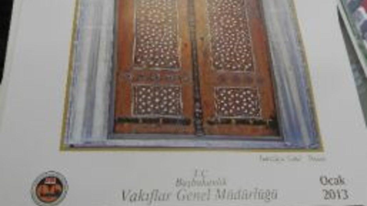 12 ahşap kapının fotoğrafının yer aldığı takvimde, kapıların hangi ilde hangi tarihi yapı üzerinde bulunduğu ise sırasıyla şöyle: “Manisa Muradiye Cami, Kayseri Ulu Cami, İstanbul Sultan Ahmet Cami, Ankara Hacı Bayram Türbesi, Edirne 2. Bayezid Cami, Kastamonu İbni Neccar Cami, Gebze Çoban Mustafa Paşa Cami, Bursa Yeşil Türbe, Konya Beyhekim Mescidi, Ankara Hacı Musa Cami, Kastamonu Kasaba Köy Mahmut Bey Cami ve Amasya 2. Bayezid Cami.’’Takvimde yer alan ahşap kapıların içerisindeki en eski tarihlisi ise, Kayseri Ulu Cami’nde bulunuyor.