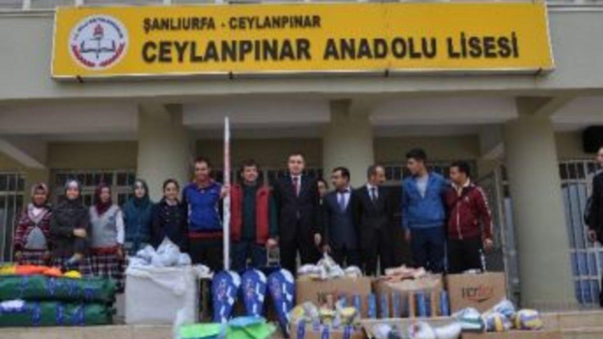 Ceylanpınar Kaymakamlığı Sosyal Yardımlaşma ve Dayanışma Vakfı tarafından köy ve merkezde bulunan okullara çeşitli spor malzemesi dağıtıldı.Ceylanpınar Kaymakamı Musa Sarı, Ceylanpınar Anadolu Lisesi’nde okulun beden eğitimi öğretmenlerine teslim ettiği spor malzemeleri arasında futboldan basketbola, voleyboldan tenise birçok spor dalına ait spor malzemeleri bulunuyor. Okulların uzun bir süre spor malzemesi ihtiyacını karşılandığını belirten beden eğitimi öğretmenleri ve tesis sorumlusu Gökhan Yüksel, Kaymakam Musa Sarı’ya yapılan spor malzemesi yardımından dolayı teşekkür etti.