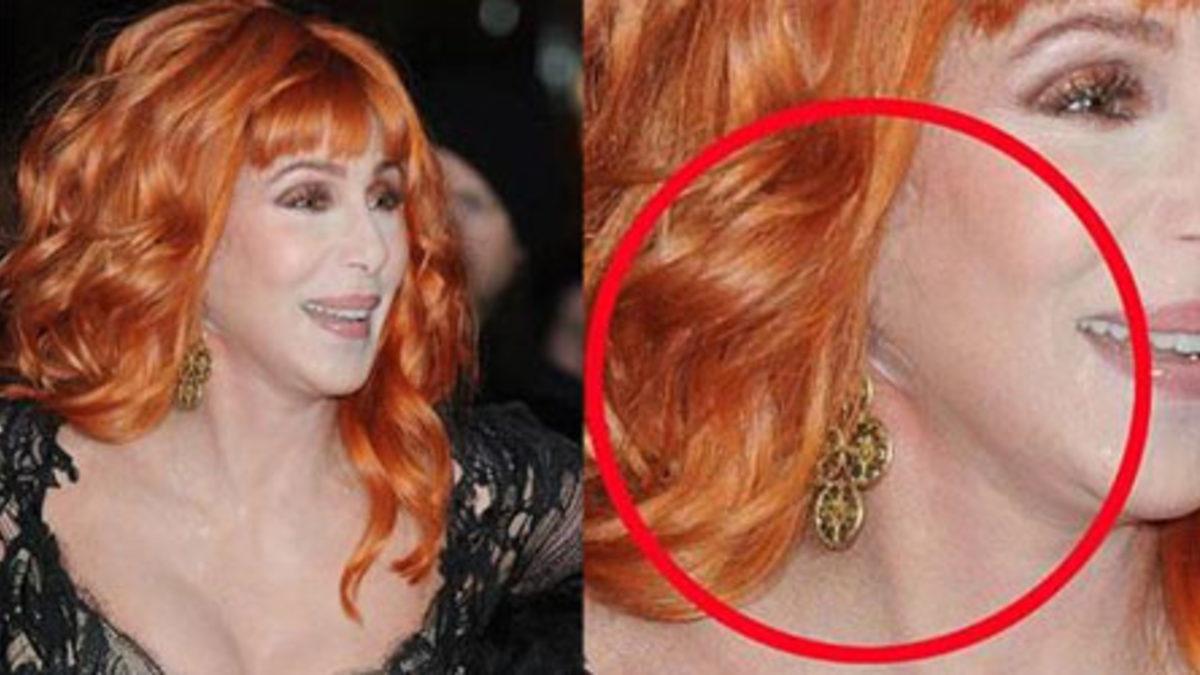 Ergenlerin ani gardrop değişiminden kaçmak için kullandığı göğüs bantlarını yaşlı yıldızlar farklı bir amaçla kullanıyorlar. Cildini daha gergin göstermek isteyen Cher de bu eski Hollywood hilesini deneyerek çenesinin kulak altında bittiği yere bir bant yapıştırdı.