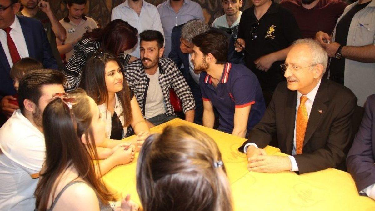 Cumhuriyet Halk Partisi (CHP) Genel Başkanı Kemal Kılıçdaroğlu, Bursa’da girdiği bir kafede gençlerle sohbet edip, sorunlarını dinledi.Referandum sonuçlarını değerlendirmek üzere Bursa’ya gelen CHP lideri Kılıçdaroğlu, akşam saatlerinde merkez Nilüfer ilçesi Görükle semtinde bir kafeye girdi. Kafede gençlerin sıkıntılarını dinleyip, onlarla çay içen Kılıçdaroğlu’na vatandaşlar yoğun ilgi gösterdi. Kılıçdaroğlu, daha sonra karayolu ile İstanbul’a hareket etti.