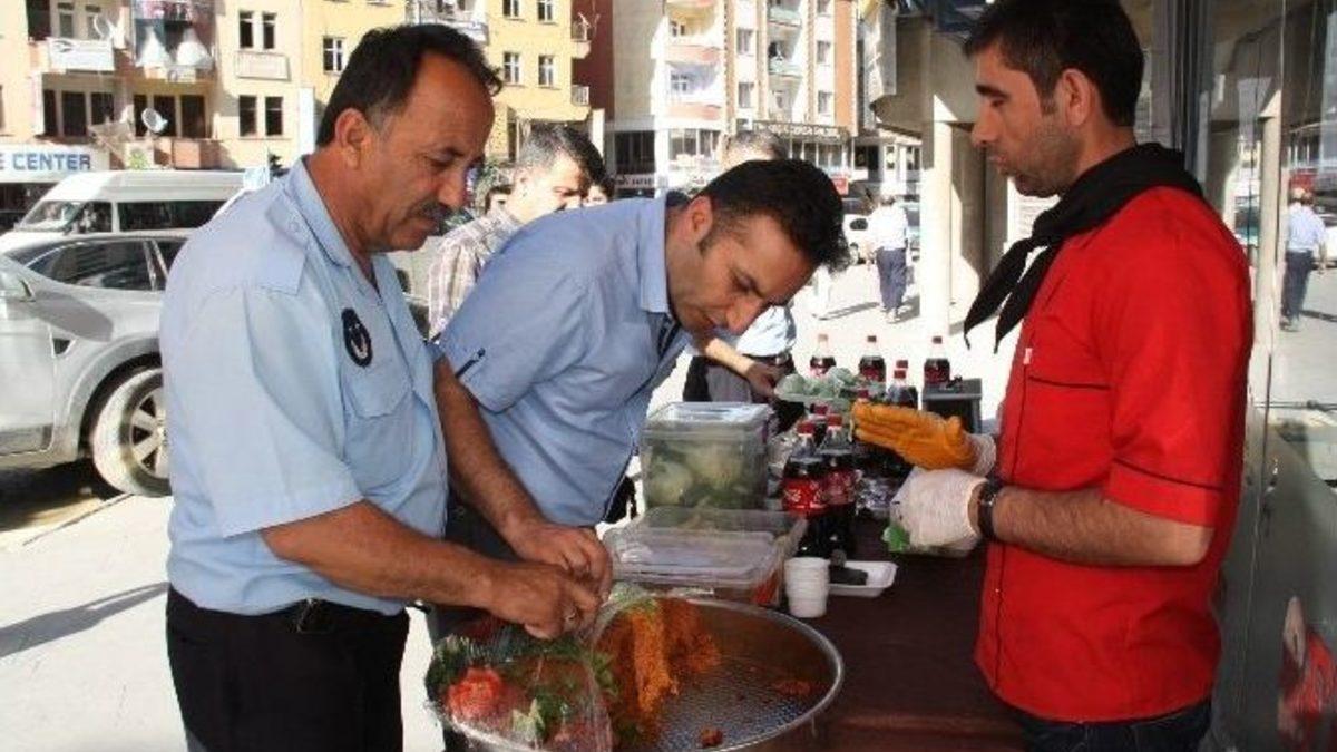 Hakkâri Belediyesi Veteriner İşleri Müdürlüğü ve Zabıta Müdürlüğü, Ramazan ayı ile birlikte kentte çiğköfte satışı yapan seyyar tezgah ve işyerlerini denetledi.Hakkâri Belediyesi Veteriner İşleri Müdürlüğü ve Zabıta Müdürlüğü’ne bağlı ekipler, kentin farklı noktalarında tezgah üzerinde ve işyerlerinde satış yapan çiğköfte satıcılarını denetledi. İşletmelerde ve seyyar tezgahlarda hijyen, terazi ayarları ve işletmelerin ruhsat kontrolleri sıkı gözetim altında tutuldu. Zabıta ekiplerince tüm seyyar tezgah ve işletme sahipleri hijyenik olmaları konusunda uyarıldı.Ramazan ayı ile birlikte kentte çiğköfteye artan rağbet üzerine harekete geçen Veteriner İşleri Müdürlüğü ve Zabıta Müdürlüğü, halk sağlığını gözeten denetimlere büyük önem verdiklerini belirtti. Veteriner İşleri Müdürü Emrullah Kanar. “Denetimlerimizin amacı, Ramazan ayında insanlarımızın sağlığını dikkate alıp kentimizdeki tüm çiğköfte satıcılarının imalathane ve satış yaptıkları yerleri denetledik. Yaptığımız denetimler sırasında herhangi bir olumsuz durumla karşılaşmadık” dedi.