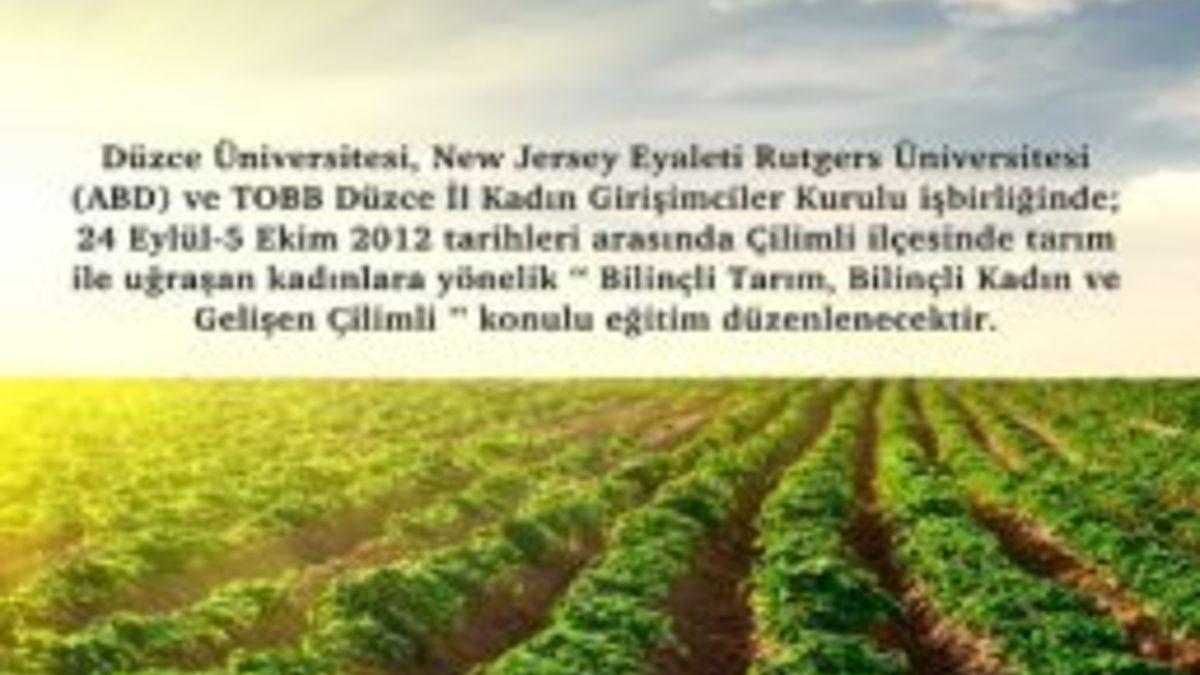 Çilimli Meslek Yüksekokulu’nda, Yrd. Doç. Dr. Selçuk Özmen’in koordinatörlüğünde 24 Eylül-5 Ekim 2012 tarihleri arasında tarım ile uğraşan kadınlara yönelik ‘‘Bilinçli Tarım, Bilinçli Kadın ve Gelişen Çilimli ’’ konulu eğitim düzenlenecek. Bu eğitim Düzce Üniversitesi, New Jersey Eyaleti Rutgers Üniversitesi (ABD) ve TOBB Düzce İl Kadın Girişimciler Kurulu işbirliğinde gerçekleştirilecek. Eğitim programıyla Çilimlili kadınların yetiştirmekte oldukları tarım ürünler konusunda bilinçlenmeleri sağlanacak.