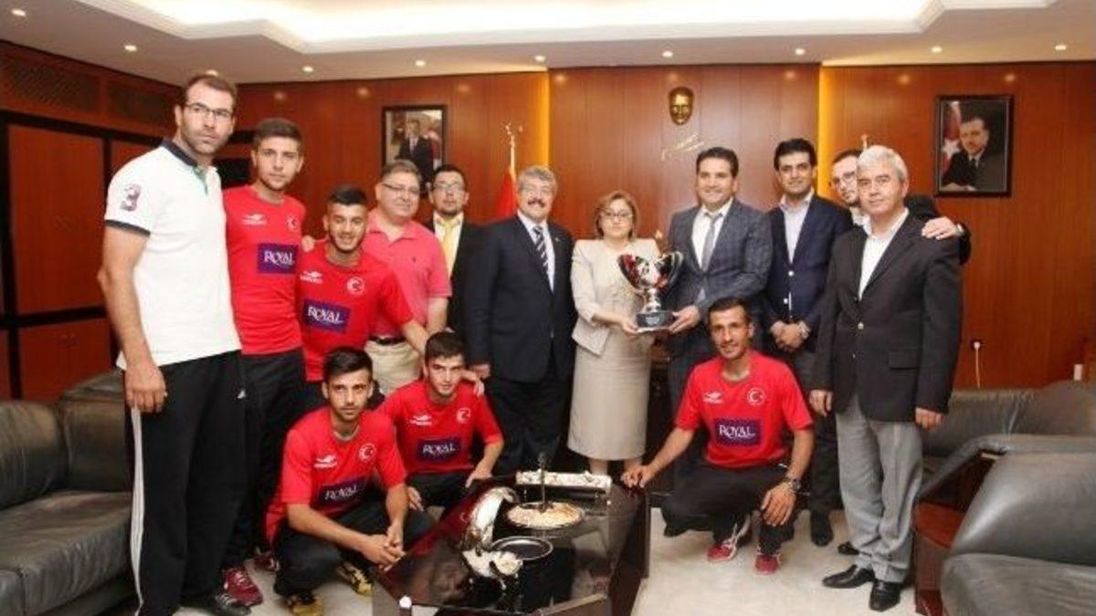 Erkekler çim hokeyinde EuroChallenge Avrupa Kulüpler şampiyonu olan Gaziantep Polisgücü Çim Hokey takımı Gaziantep Büyükşehir Belediye Başkanı Fatma Şahin’i ziyaret etti.Gaziantep’in her yönü ile önemli bir kent olduğunu, spor alanında da önemli başarılar elde ettiğini ifade eden Şahin, çim hokeyinde büyük bir başarı göstererek Avrupa şampiyonu olan Polisgücü Çim Hokey’i takımını tebrik etti. Şahin, Gaziantep’e bu şampiyonluğu yaşatan Polisgücü takımına başarılarının devamını diledi.Şampiyon olduktan sonra kente dönüp Gaziantep’in desteğini alarak daha iyi sportif başarılar elde etmek istediklerini vurgulayan Polisgücü Çim Hokey Takımı Kulüp Başkanı Mehmet Kaplan, bu tür başarıların takımın başarısı gibi gözüktüğünü, ancak ulusal bir başarı olunca kente de yansıdığını kaydetti. Gaziantep’teki birçok kurumu ziyaret ettiklerini ve kentin desteğini yanlarında gördüklerini belirten Kaplan, ziyaretlerden memnun kaldıklarını belirtti.Daha sonra Başkan Fatma Şahin’e forma hediye eden Polisgücü Çim Hokey’i takımı, bu başarılarının devam edeceğini kaydetti.