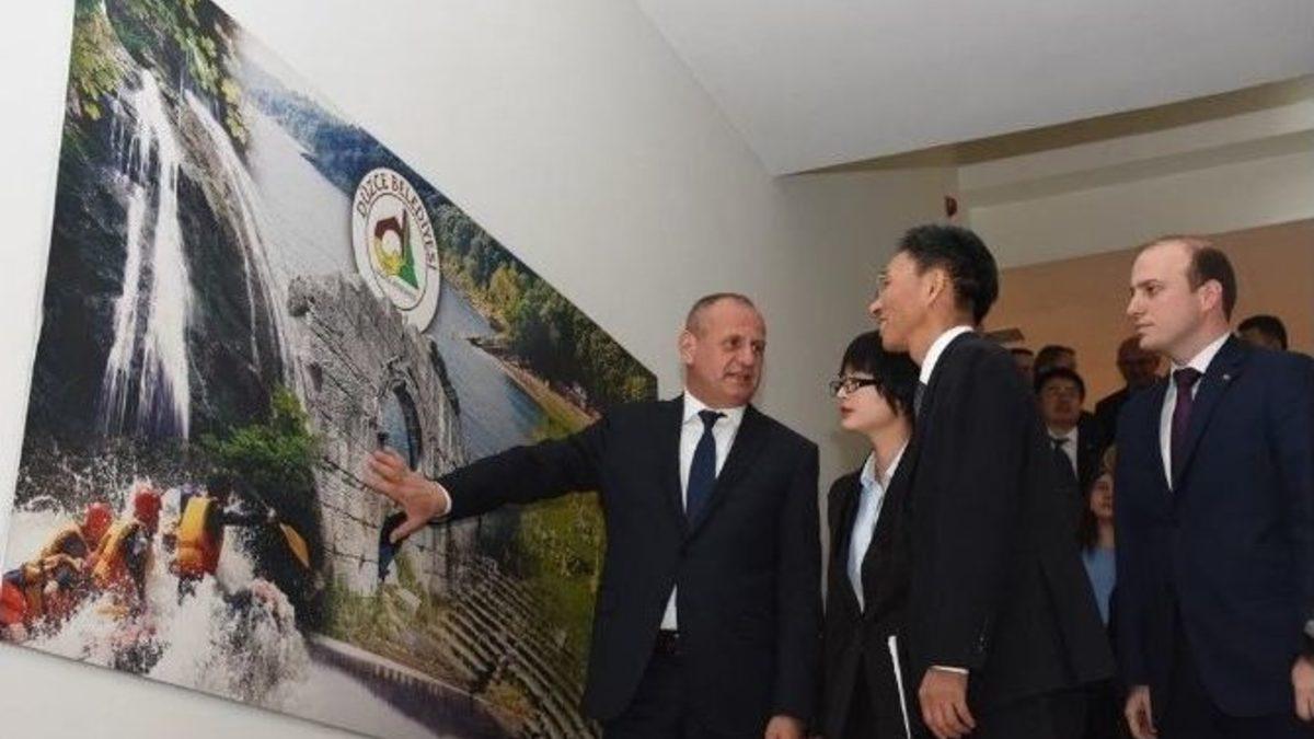 Çin Halk Cumhuriyeti Ankara Büyükelçisi Yu Hongyang ve Çinli iş adamlarının da bulunduğu heyet ile Düzce Belediye Başkanı Mehmet Keleş’i makamında ziyaret etti.Çin Halk Cumhuriyeti Ankara Büyükelçisi Yu Hongyang beraberindeki bir grup iş adamıyla birlikte Düzce Belediye Başkanı Mehmet Keleş’i ziyaret etti. Düzce’nin sanayi alanındaki gelişimi ve yatırımcıların gösterdiği ilgi nedeniyle yükselen bir değer olması ile ilgili konuşulan ziyarette Büyükelçi Hongyang, Başkan Keleş ile yatırımcıların tercihleri hakkında fikir alış verişinde bulundu.İş adamlarının da ilgi ile takip ettiği Düzce’nin gelişimine ilişkin yapılan konuşmalarda Başkan Keleş heyetin ziyaretinden duyduğu memnuniyeti dile getirerek, "İlimizin kalkınması ve gelişmesi bakımından sanayi yatırımlarını dikkatle takip ediyor ve şehrimizde kurulmaları istihdam yaratmaları için çaba sarf ediyoruz. Bu çerçevede sizlerle de konuyla ilgili görüşerek fikir alış verişinde bulunma şansımız olduğu için büyük memnuniyet duydum. İlimizin tercih sıralamasında en üst sıralarda yer almasının asıl sebebi büyük şehirlere yakın olması ve Anadolu’ya açılan bir kapı vazifesi görmesidir. Bu nedenle gerek yerli gerekse yabancı yatırımcıların ilgisini çekmektedir. Bu durum bizleri çok memnun ediyor, çünkü bir girişimcinin burada yatırım yapması her şeyden önce vatandaşlarımıza istihdam yapar, dolayısıyla Düzce’ye kazandırır” dedi.Büyükelçi Hongyang da Düzce’ye gelmekten büyük mutluluk duyduğunu dile getirerek, “Yerli ve yabancı yatırımcıların Düzce’yi tercih etmesi çok doğal gerek coğrafi yapısı gerek insan gücü ve ham madde potansiyeli bakımından öne çıkan bir şehir. Ben de yatırımcı arkadaşlarımın bu şehri daha yakından tanımak adına görmelerini arzu ettim. Sizlere de bu güzel karşılamanızdan dolayı teşekkür ediyorum” dedi.Başkan Mehmet Keleş, Büyükelçi Hongyang’a Türk el sanatlarını yansıtan bir vazo hediye etti.